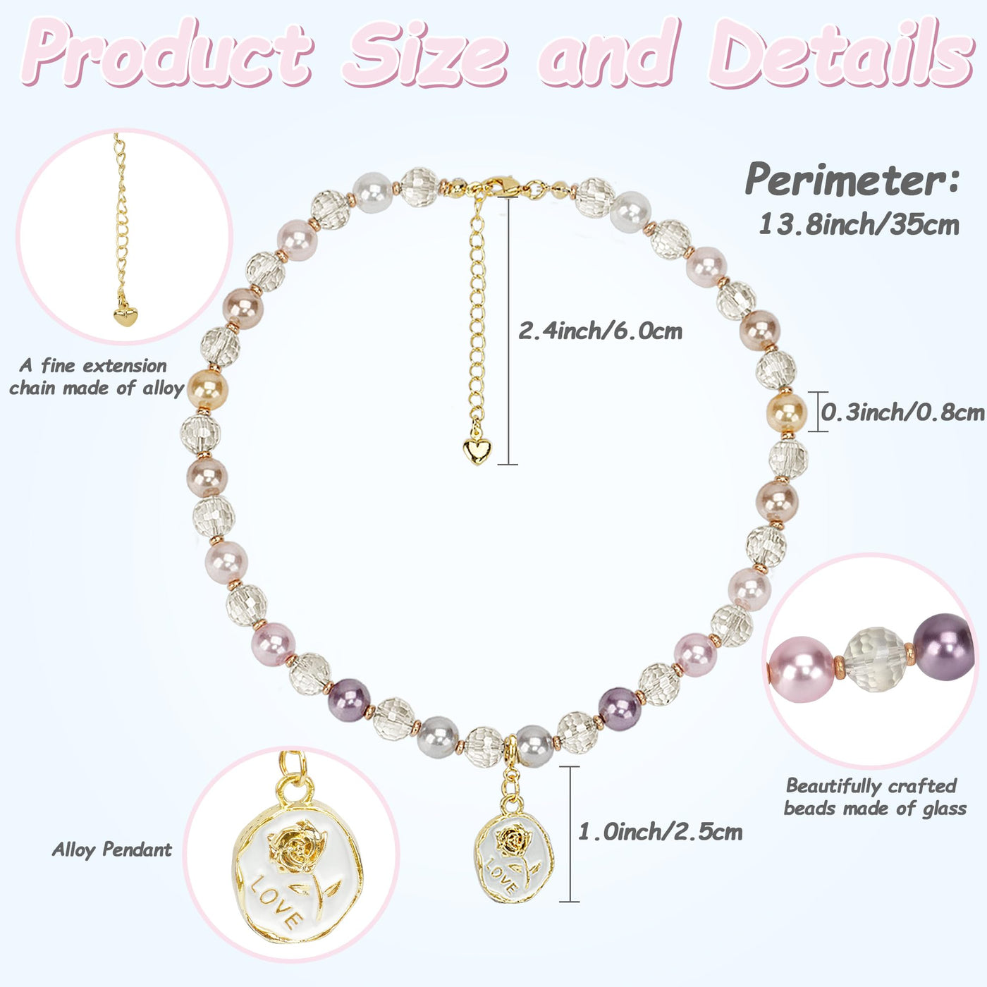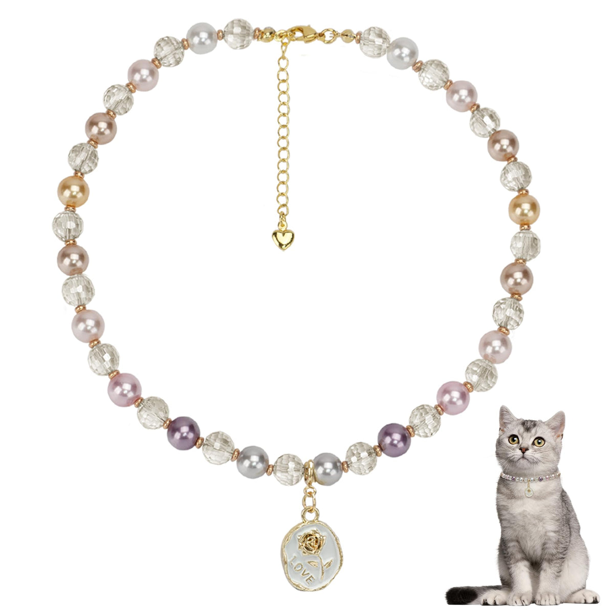 Funbegin Cat Dog Necklace Collar With Pearls Rhinestones Elegant Bling Diamond Stylish Accessories For Pet Puppies Small