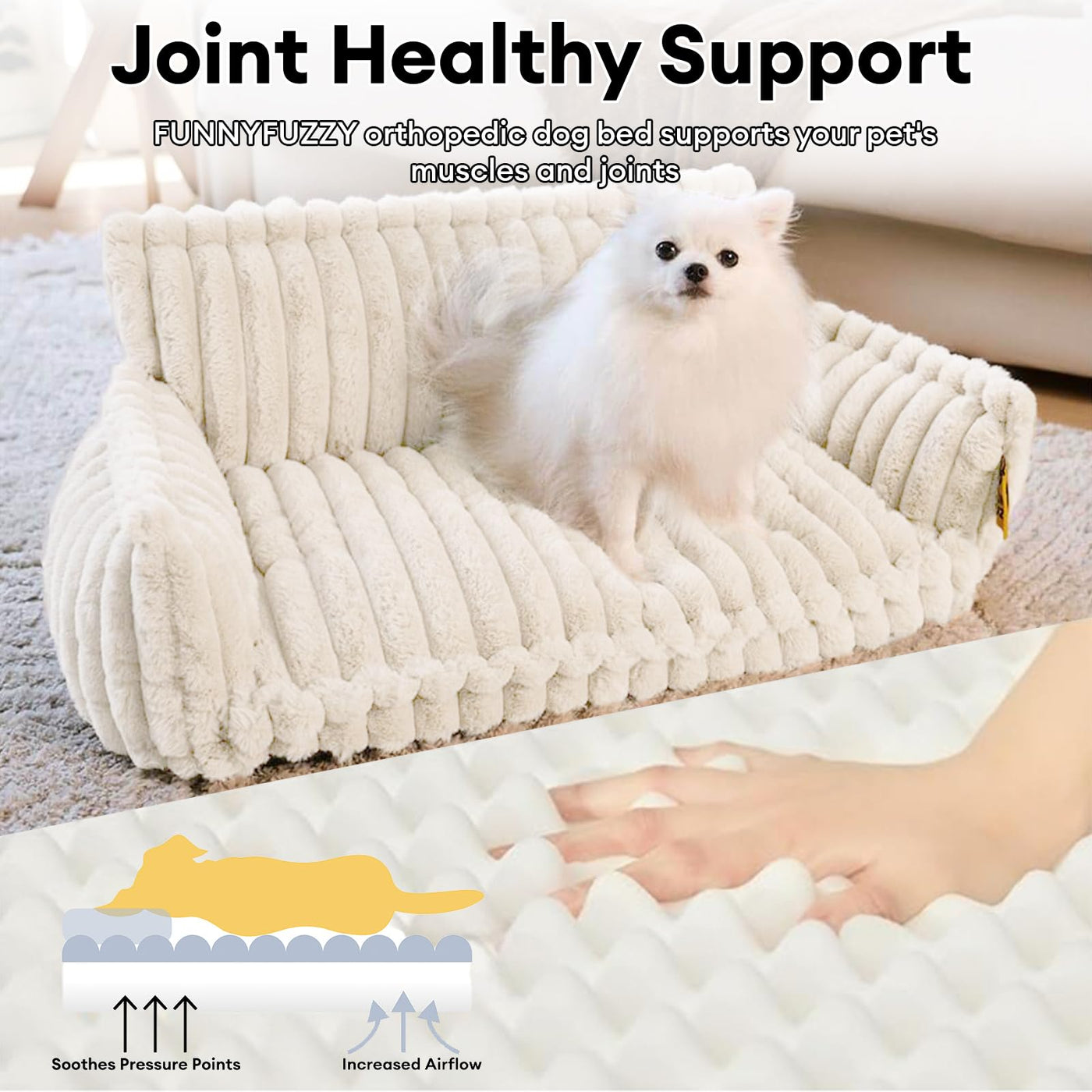 Funny Fuzzy Dog Bed For Medium Large Dogs - Orthopedic Dog Sofa With Removable Washable Cover And Anti-Slip Bottom, Supportive F