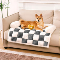 Funny Fuzzy Pet Couch Covers For Sofa, Dog Couch Cover Bed Washable Plush Pets Mat For Furniture Protector Cream Square Plaid Co