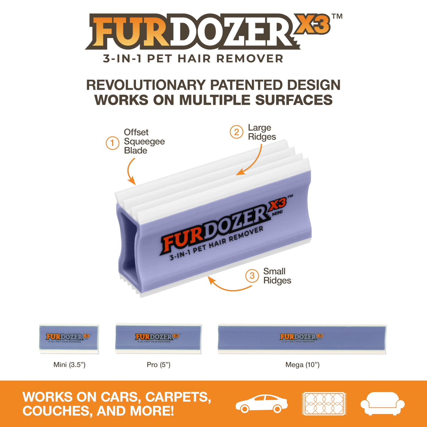 Furdozer X3 Mini Pet Hair Remover & Auto Detailing Tool - Cat & Dog Hair Remover For Carpet, Car Interior, Couch, Bedding, & Fur