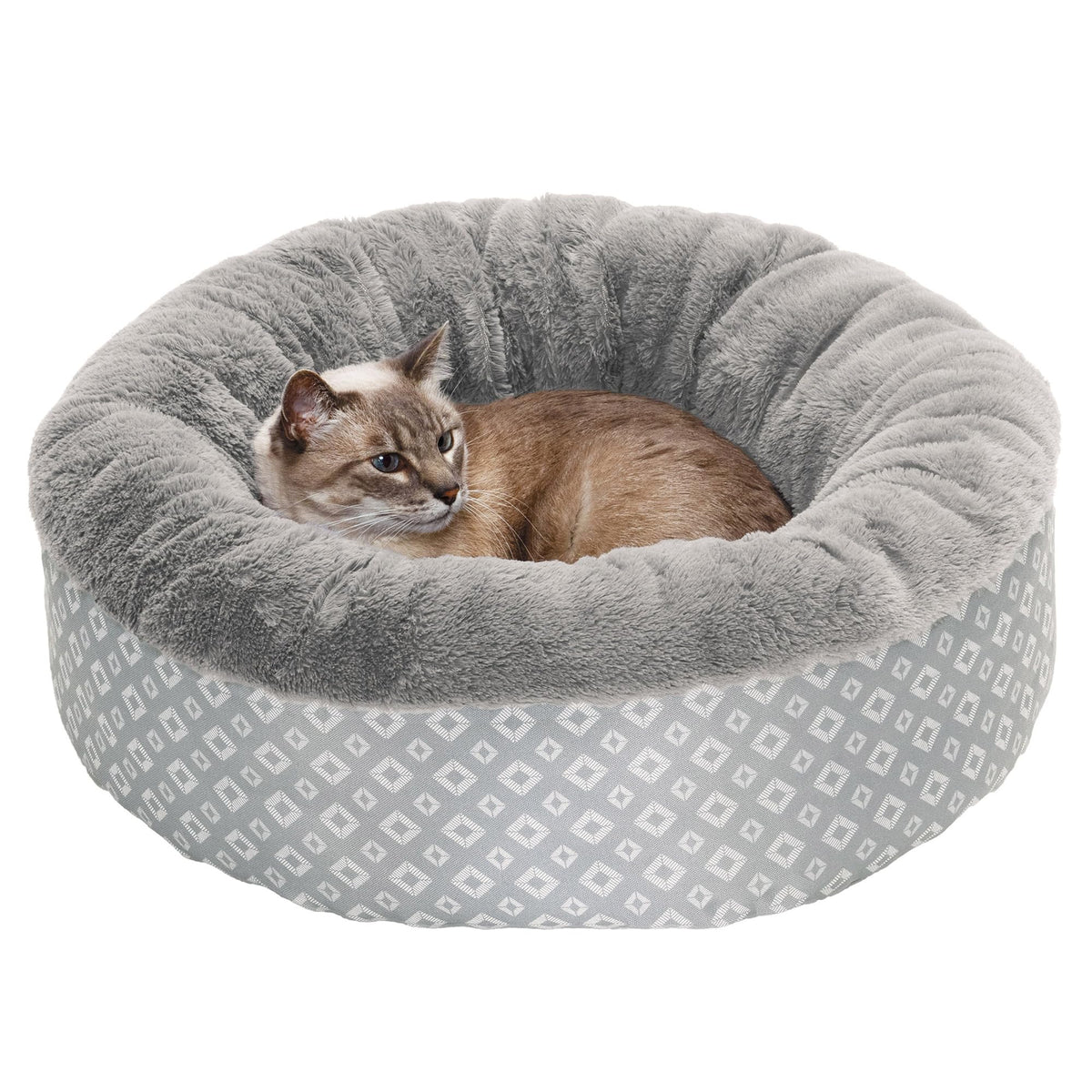 Furhaven 23'' Round Donut Dog Bed For Indoor Cats & Small Dogs, Washable, For Dogs Up To 20 Lbs - Plush & Diamond Print Donut Be