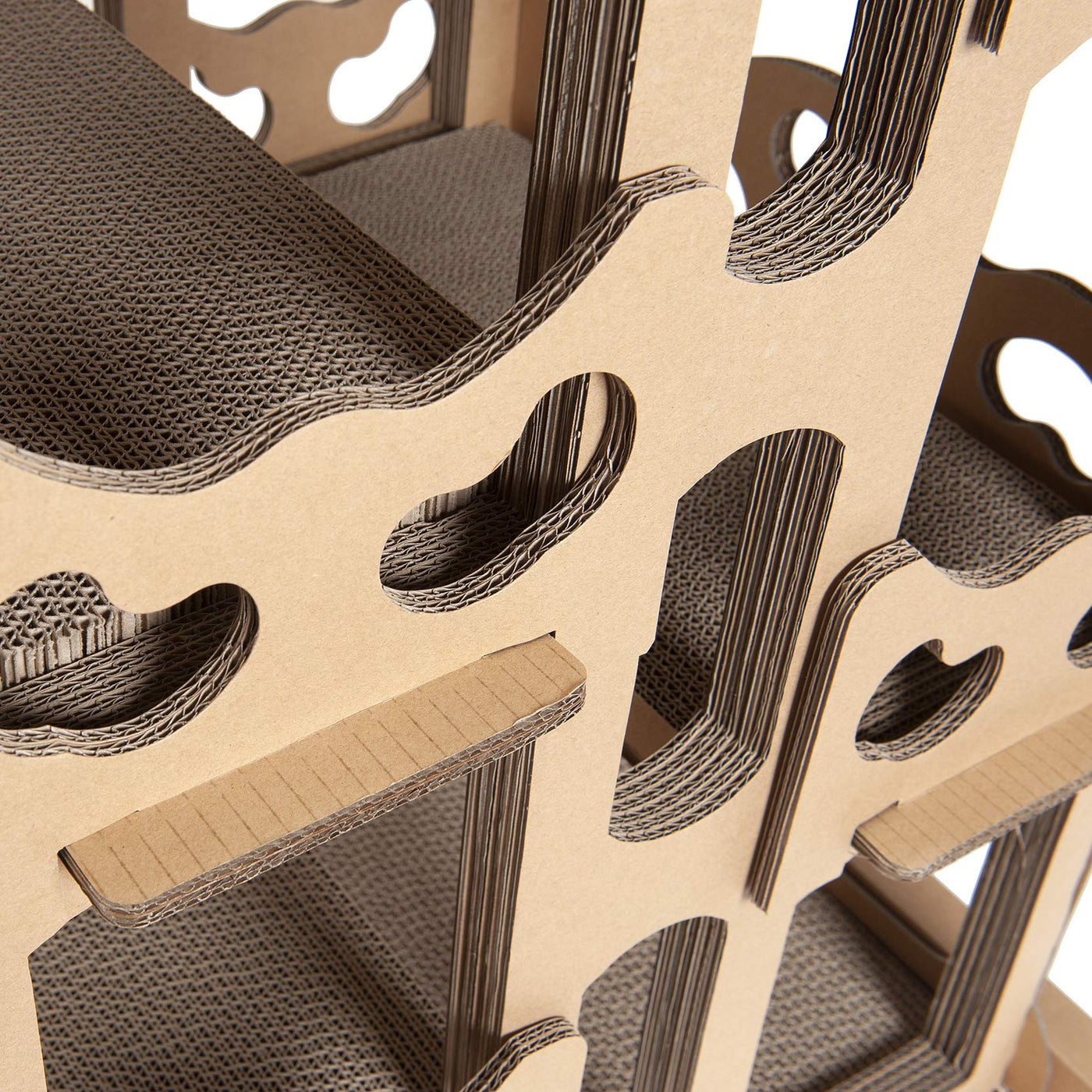 Furhaven Cardboard Cat House Tower Playground, Multi-Level Cat Tree Hideout Scratcher With Catnip