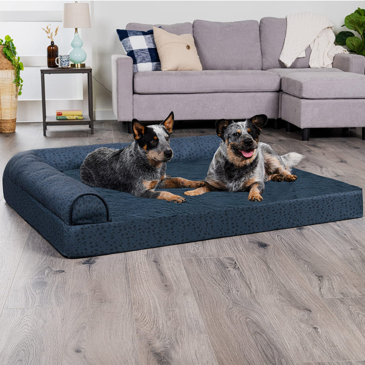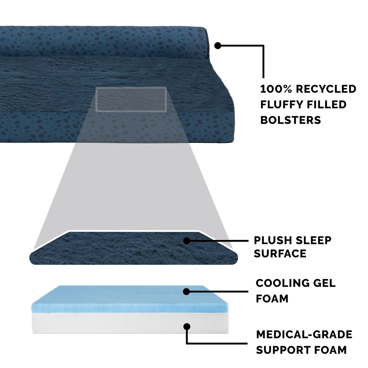 Furhaven Cooling Gel Dog Bed For Large Dogs W/ Removable Bolsters & Washable Cover, For Dogs Up To 125 Lbs - Plush & Almond Prin