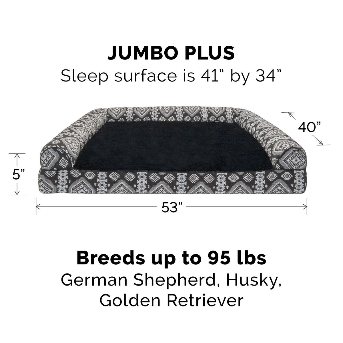 Perfect For Pets Young And Old, The Furhaven Plush & Southwest Kilim Decor Sofa-Style Dog Bed Is Designed To Provide Your Loved One With Maximum Comfort For A Good Nights Rest. With A Luxurious Sleeping Surface Your Pet Will Be More Snug Than A Bug In A Rug! The Medical-Grade Foam Core Includes A Layered Orthopedic Foam Core Topped With Gel-Infused Memory Foam. Micro Gel Beads Help Keep The Bed Cooler While Memory Foam Conforms To Your Pet'S Shape Providing Superior Support Of Joints And Pressure Points. Gel Foam Has Cooling Properties Reducing The Sleeping Surface By 1 Or 2 Degrees, Wicking Heat Away From Your Pet. The Superior Support Provided By Both Foam Cores Will Help Your Pet Reach A Deeper, More Restorative Rest For Your Pet'S Health. These Are The Perfect Dog Beds For Hot Summer Days. Theyll Love The Bolsters' Soft But Supportive Feel Provided On Three Sides Giving Them A Variety Of Cozy Positions To Snuggle Into. The Bolsters Are A Great Pillow For Your Pet To Lie Their Head On Or, For Pets That Like To Cozy Into Your Couch, They Can Snuggle Close To The Sides For A Sense Of Security And Warmth. Whatever Position Your Pooch Likes To Lay In, Theyll Find Nothing But Comfort And Sweet Dreams! With The Feel Of A Couch, Your Pet Will Love Having Their Own Space To Curl Into While Youll Love Having Your Favorite Spot On The Couch Back! No More Unwanted Pet Fur And Scratches On Your Furniture. Its Great For Older Pets Who May Be Unable To Jump On The Couch And Have Had To Lie On The Floor. Easy To Clean. Cover Care: Remove From Core Before Washing (See Seam Label For Fabric Care Instructions). Foam Care: Cooling Gel Foam Is Highly Absorbent. Spot Clean With Mild Soap Or Enzyme-Based Cleaning Spray. Rinse But Do Not Soak Or Submerge. Press Out Moisture With A Dry Towel And Air Dry. A Fan May Be Used To Speed Drying. Do Not Wring Or Place In Machine Dryer. Dry Completely Before Use. Not For Unsupervised Use By Animals With Destructive Chewing Behavior.