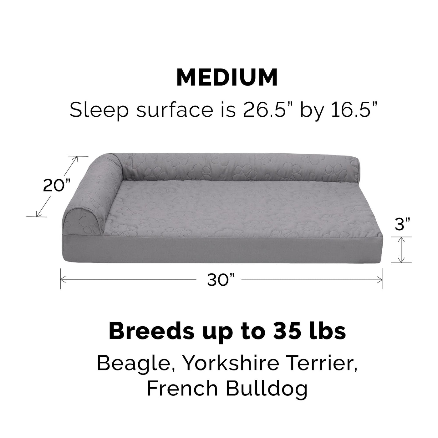 Pamper Your Pet With A New Furhaven Pinsonic Quilted Paw L Chaise Dog Bed! The Smooth Sleep Surface Is Soft And Perfect For Nighttime Snuggles; Featuring A Stylish Quilted Design To Complement Anay Room Of Your House. The L-Shaped Bolsters Support Your Pets Back And Hips, Providing Additional Support. The L-Shape Also Provides The Perfect Nook For Pets That Like To Nest Into Comfort. The Two Raised, Rounded Bolster Ends Allow Your Pet To Lay Their Paws Or Neck On The Pillowed Edge, Helping To Align The Neck And Spine. The Medical-Grade Foam Core Includes A Layered Orthopedic Foam Core Topped With Gel-Infused Memory Foam. Micro Gel Beads Help Keep The Bed Cooler While Memory Foam Conforms To Your Pet'S Shape Providing Superior Support Of Joints And Pressure Points. Gel Foam Has Cooling Properties Reducing The Sleeping Surface By 1 Or 2 Degrees, Wicking Heat Away From Your Pet. The Superior Support Provided By Both Foam Cores Will Help Your Pet Reach A Deeper, More Restorative Rest For Your Pet'S Health. Available In Various Stylish Colors And Diverse Sizing Options So Your Pet Can Sprawl And Lounge The Day In Maximum Comfort And Style. Low Profile, Step-On Design For Easy Access By Older Or Disabled Pets. Easy To Clean. Cover Care: Remove From Core Before Washing (See Seam Label For Fabric Care Instructions). Foam Care: Cooling Gel Foam Is Highly Absorbent. Spot Clean With Mild Soap Or Enzyme-Based Cleaning Spray. Rinse But Do Not Soak Or Submerge. Press Out Moisture With A Dry Towel And Air Dry. A Fan May Be Used To Speed Drying. Do Not Wring Or Place In Machine Dryer. Dry Completely Before Use. Not For Unsupervised Use By Animals With Chewing Behaviors.
