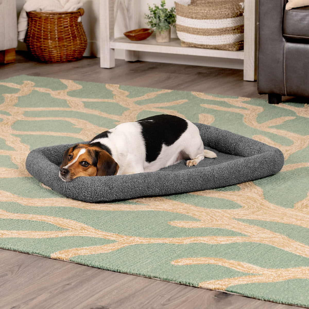 Furhaven Dog Bed For Medium/Small Dogs & Indoor Cats, 100% Washable, Sized To Fit Crates - Sherpa Fleece Bolster Crate Pad - Gra
