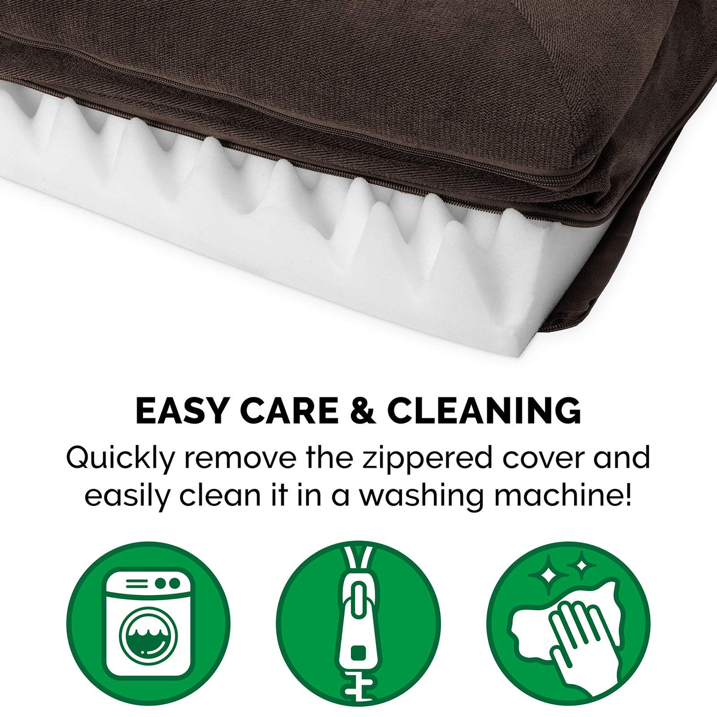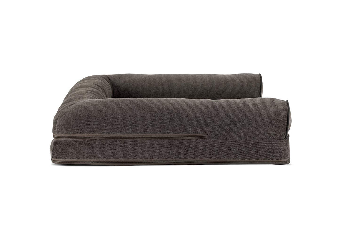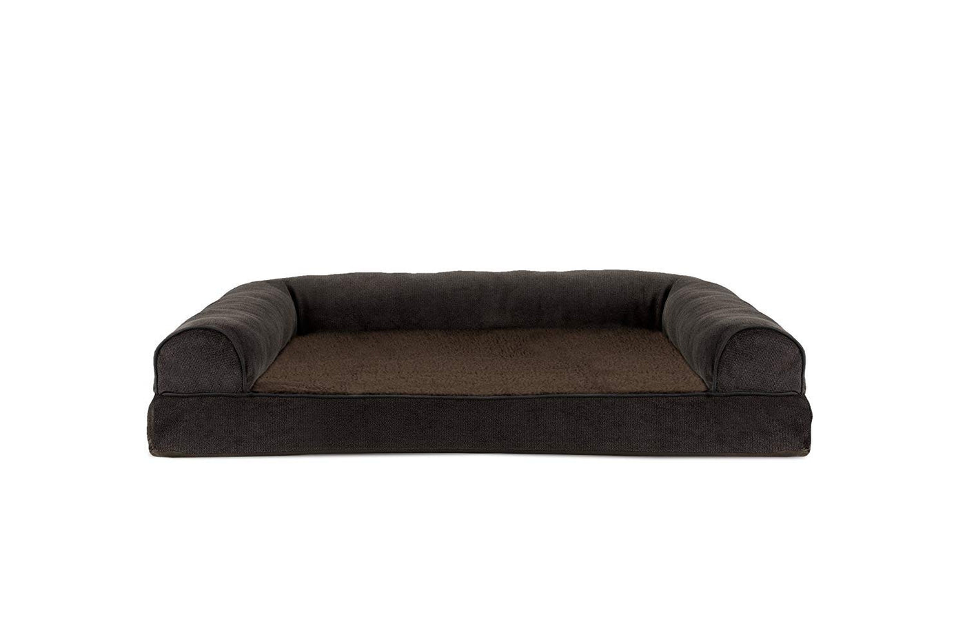 Finally, a solution for your arthritic pet's pain! This Furhaven Sherpa & Chenille Sofa-Style Dog Bed has a soft, faux fleece sleep surface providing your pet comfort while the orthopedic (egg crate) foam base supports your dog's joints and pressure points. The Jumbo Plus option, for larger breeds, features solid slab orthopedic foam for greater support and comfort. The sofa bed has three walls to give your pup a variety of positions to lay in while remaining comfortable. Your best friend deserves a good night’s rest and now, it’s possible. With their very own orthopedic pet bed, your loved one will have maximum comfort for a great night's rest. Any position will do on this sofa bed! The squishy bolsters on three sides provide comfort for your pet to lay down in a variety of ways while always being provided the support they need. For example, your dog can lay on their tummy and use one of the bolsters as a pillow for a cozy night of sweet dreams. Cats love our sofa beds also! The bolsters provide cozy walls for your feline friend to snuggle into for their cat naps. This luxurious orthopedic pet couch provides a cozy spot for your companion to snuggle up in, leaving your favorite spot on the couch all for you! Easy to clean. Cover care: Remove from core before washing (see seam label for fabric care instructions). Foam care: Spot clean with mild soap; rinse. Blot, then air dry. Do not wring. Not for unsupervised use by animals with chewing behaviors.