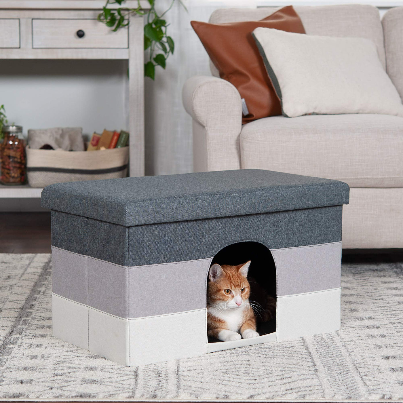 Achieve The Ultimate Combination Of Household Harmony With Furhaven Collapsible Ottoman Footstool Pet House Seamlessly Integrate Your Petas Hideout Into Your Daily Life In Both Style And Comfort Featuring A Simple But Innovative Pop-Up Design, The Collapsible Pet House Lets Your Favorite Furball Be In The Middle Of The Action Without Being The Center Of Attention Available In Various Color Options To Blend With A Variety Of Home Decors, These Innovative Cubbies Are The Perfect Hideaway For Curious Cats And Shy Dogs Inside The Easy-Care Canvas Walls There Is A Private Space And A Soft Fleece-Covered Base (Removable And Washable) For Your Petas Comfort All You Need Is Their Favorite Toy And A Soft Blankie To Achieve Pet Purr-Fection (Optional Hanging Ball Toy Is Included For Your Feline Friends - Or Pups Who Are Feline-Inclined) This Houseas Padded Top Provides Extra Insulating Comfort By Trapping Your Petas Natural Body Heat To Create A Cozy Haven For Your Dog Or Cat Not Just For Your Pet - This Ottoman Is A Great Spot To Rest Your Feet And Is Sturdy Enough To Support 130-Pounds Of Static Weight Going On A Family Trip This Pet House Is Easy To Take Along And Creates An Instant And Familiar Space For Your Dog Or Cat When Boarding Or Visiting Friends Exterior Is Hand Wash Only The Pet House Sets Up In Seconds By Simply Unfolding The Walls, Inserting The Base Panel And Placing The Lid On Top Pro Tip Place Your Petas Favorite Soft Object Or Blanket In The Footstool For Extra Padding And To Encourage Use