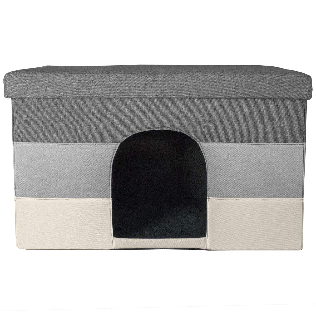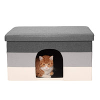 Furhaven Large Pet House Collapsible Ottoman-Footstool Condo Pet Bed - Hygge Stripe (Gray/Cream), Large