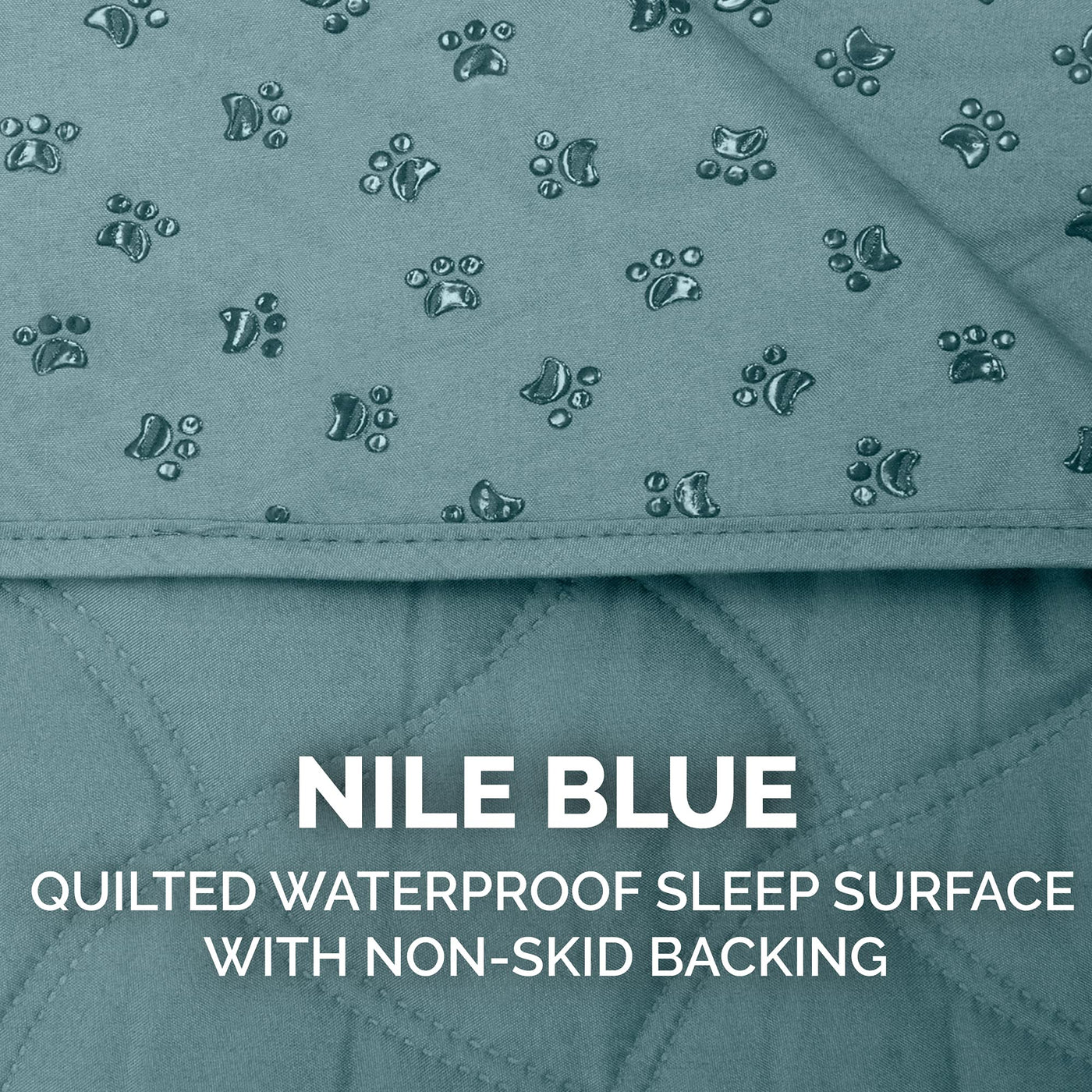 For those folks who just can’t say 'no' to adorable pets (aka bed hogs), the Furhaven Waterproof Quilted Twill Mattress Furniture Protector Cover is the solution. Sized to fully cover standard-sized mattresses, this attractive quilt features a waterproof core that protects furniture and bedding from fur, dirt, spills and liquids. Brushed polyester sleep surface is soft on paws and noses. Cute 'paw' no-skid backing helps the blanket to stay in place on any surface. Perfect to protect beds and mattresses or snuggle up on the couch with your favorite furball. Also great for taking along on picnics, in the car or camping! Machine washable.