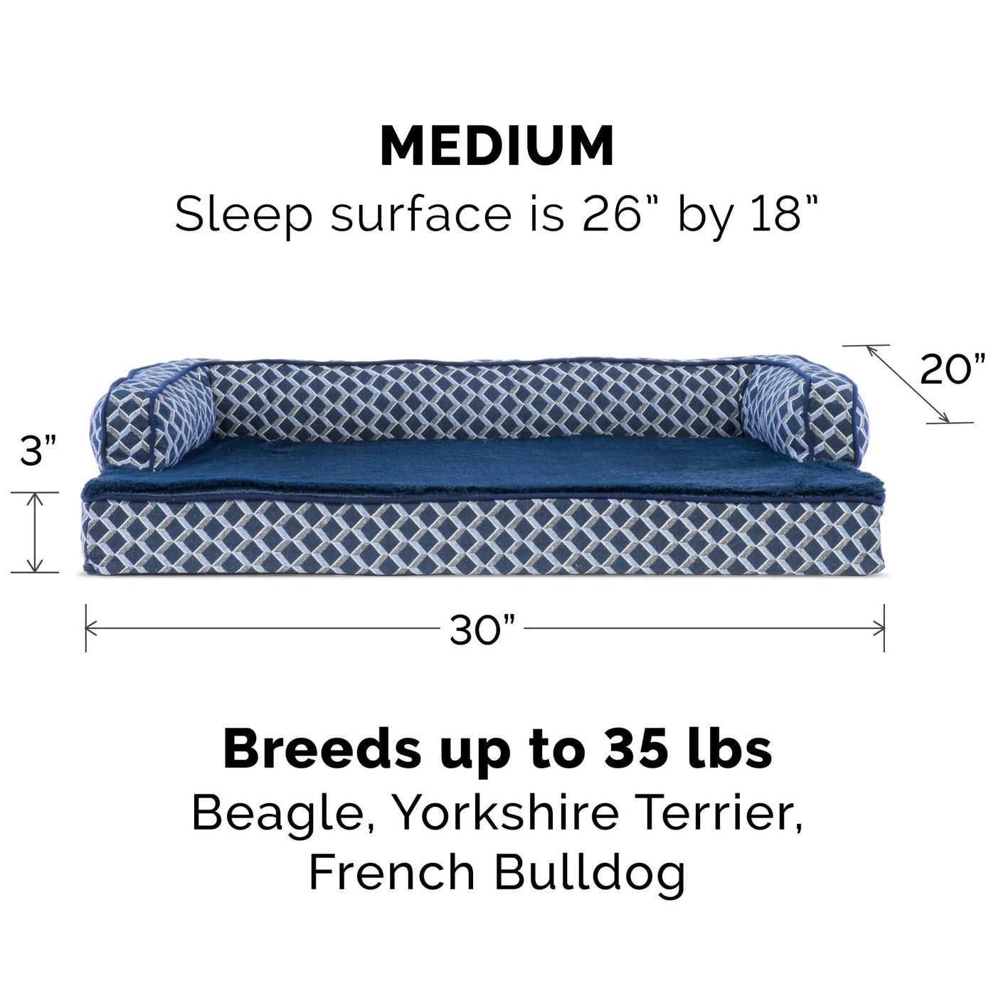 Furhaven Medium Orthopedic Dog Bed Comfy Couch Plush & Decor Sofa-Style W/ Removable Washable Cover - Diamond Blue, Medium