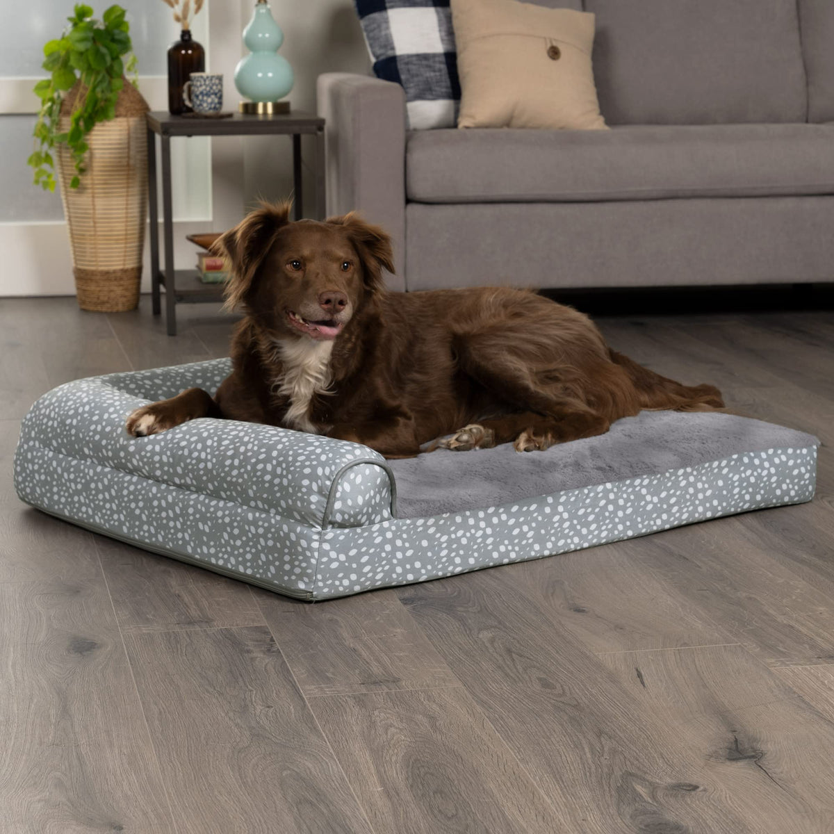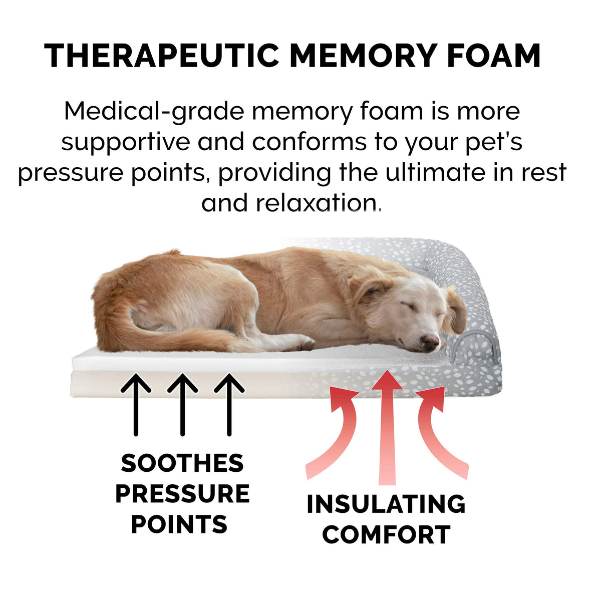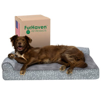 Furhaven Memory Foam Dog Bed For Large Dogs W/ Removable Bolsters & Washable Cover, For Dogs Up To 95 Lbs - Plush & Almond Print