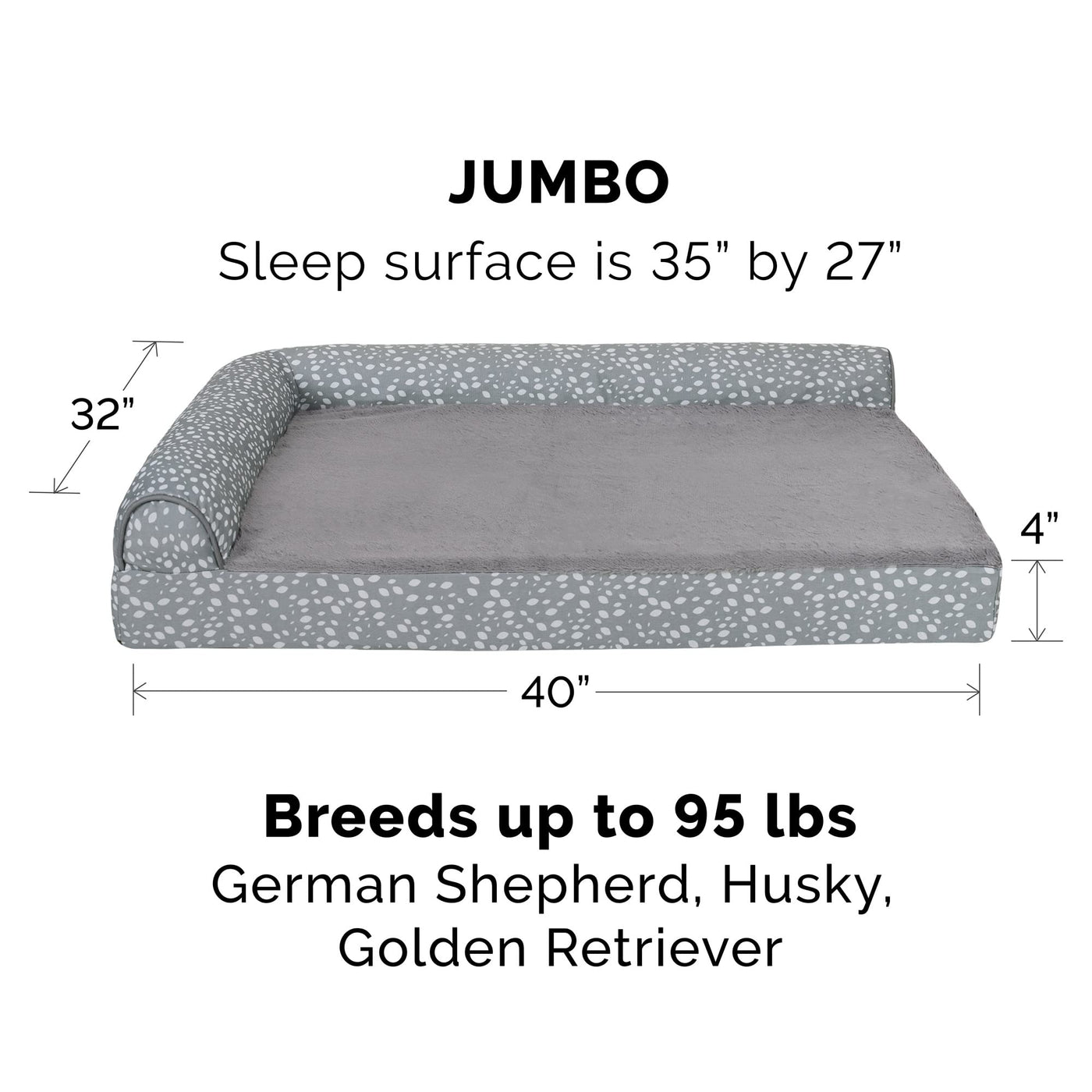 Pamper Your Pet With A New Furhaven Plush & Almond Print L Chaise Dog Bed! The Sleep Surface Is Lined With Soft Plush Faux Fur For Cozy Nighttime Snuggles. The L-Shaped Bolsters Support Your Pets Back And Hips, Providing Additional Support. The L-Shape Also Provides The Perfect Nook For Pets That Like To Nest Into Comfort. The Two Raised, Rounded Bolster Ends Allow Your Pet To Lay Their Paws Or Neck On The Pillowed Edge, Helping To Align The Neck And Spine. Memory Foam Is Designed To Work With Your Pet'S Weight And Contour To Their Body Providing Better Overall Support And Relief From Painful Muscles And Joint Discomfort. The Zippered Cover Is Easily Removed And Machine Washable For Your Convenience. Low Profile, Step-On Design For Easy Access By Older Or Disabled Pets. Easy To Clean. Cover Care: Remove From Core Before Washing (See Hang Tag And/Or Seam Label For Care Instructions). Foam Care: Memory Foam Is Highly Absorbent. Spot Clean With Mild Soap Or Enzyme-Based Cleaning Spray. Rinse But Do Not Soak Or Submerge. Press Out Moisture With A Dry Towel And Air Dry. A Fan May Be Used To Speed Drying. Do Not Wring Or Place In Machine Dryer. Dry Completely Before Use. Not For Unsupervised Use By Animals With Destructive Chewing Behavior.