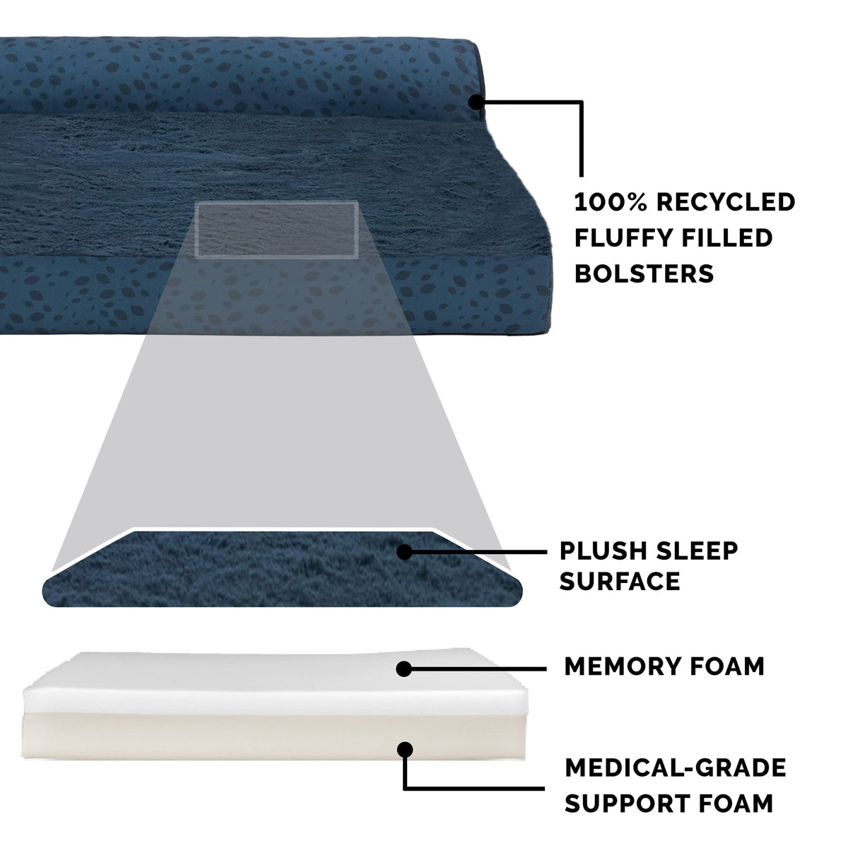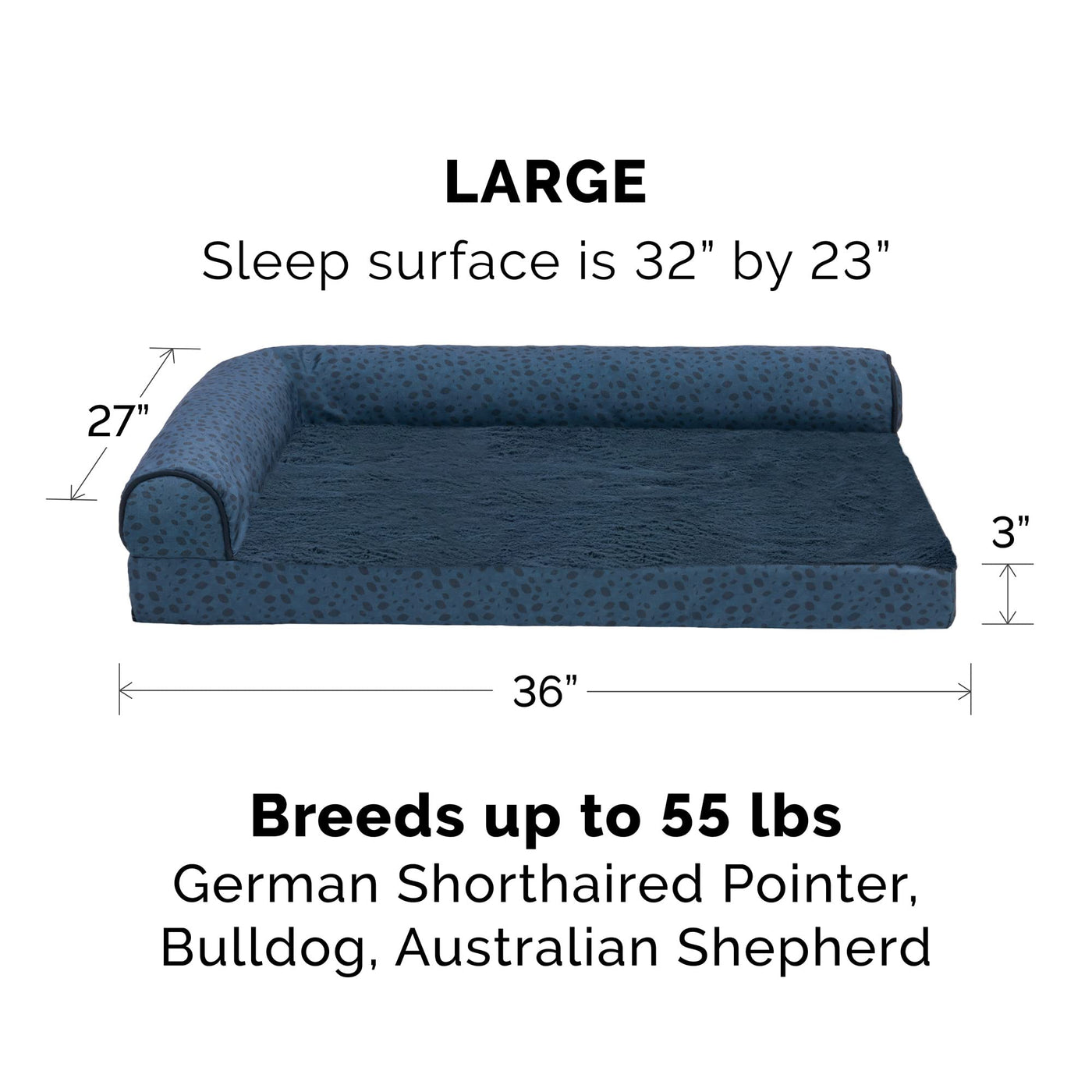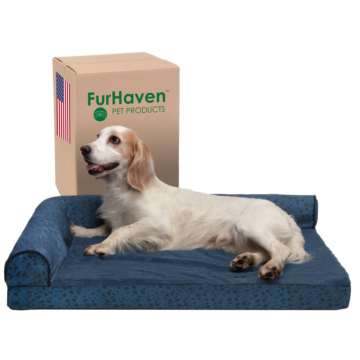 Pamper Your Pet With A New Furhaven Plush & Almond Print L Chaise Dog Bed! The Sleep Surface Is Lined With Soft Plush Faux Fur For Cozy Nighttime Snuggles. The L-Shaped Bolsters Support Your Pets Back And Hips, Providing Additional Support. The L-Shape Also Provides The Perfect Nook For Pets That Like To Nest Into Comfort. The Two Raised, Rounded Bolster Ends Allow Your Pet To Lay Their Paws Or Neck On The Pillowed Edge, Helping To Align The Neck And Spine. Memory Foam Is Designed To Work With Your Pet'S Weight And Contour To Their Body Providing Better Overall Support And Relief From Painful Muscles And Joint Discomfort. The Zippered Cover Is Easily Removed And Machine Washable For Your Convenience. Low Profile, Step-On Design For Easy Access By Older Or Disabled Pets. Easy To Clean. Cover Care: Remove From Core Before Washing (See Hang Tag And/Or Seam Label For Care Instructions). Foam Care: Memory Foam Is Highly Absorbent. Spot Clean With Mild Soap Or Enzyme-Based Cleaning Spray. Rinse But Do Not Soak Or Submerge. Press Out Moisture With A Dry Towel And Air Dry. A Fan May Be Used To Speed Drying. Do Not Wring Or Place In Machine Dryer. Dry Completely Before Use. Not For Unsupervised Use By Animals With Destructive Chewing Behavior.