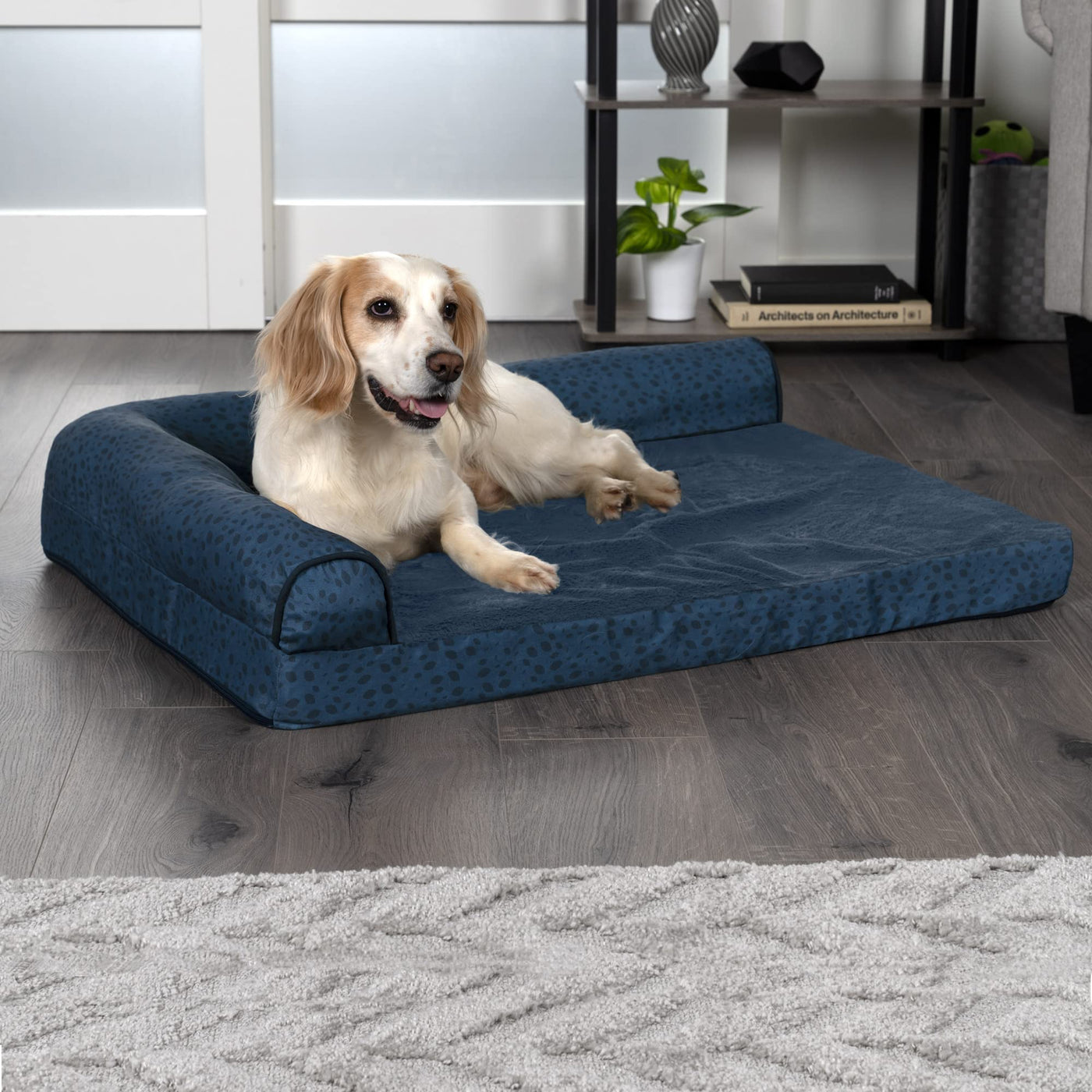 Furhaven Memory Foam Dog Bed For Large/Medium Dogs W/ Removable Bolsters & Washable Cover, For Dogs Up To 55 Lbs - Plush & Almon
