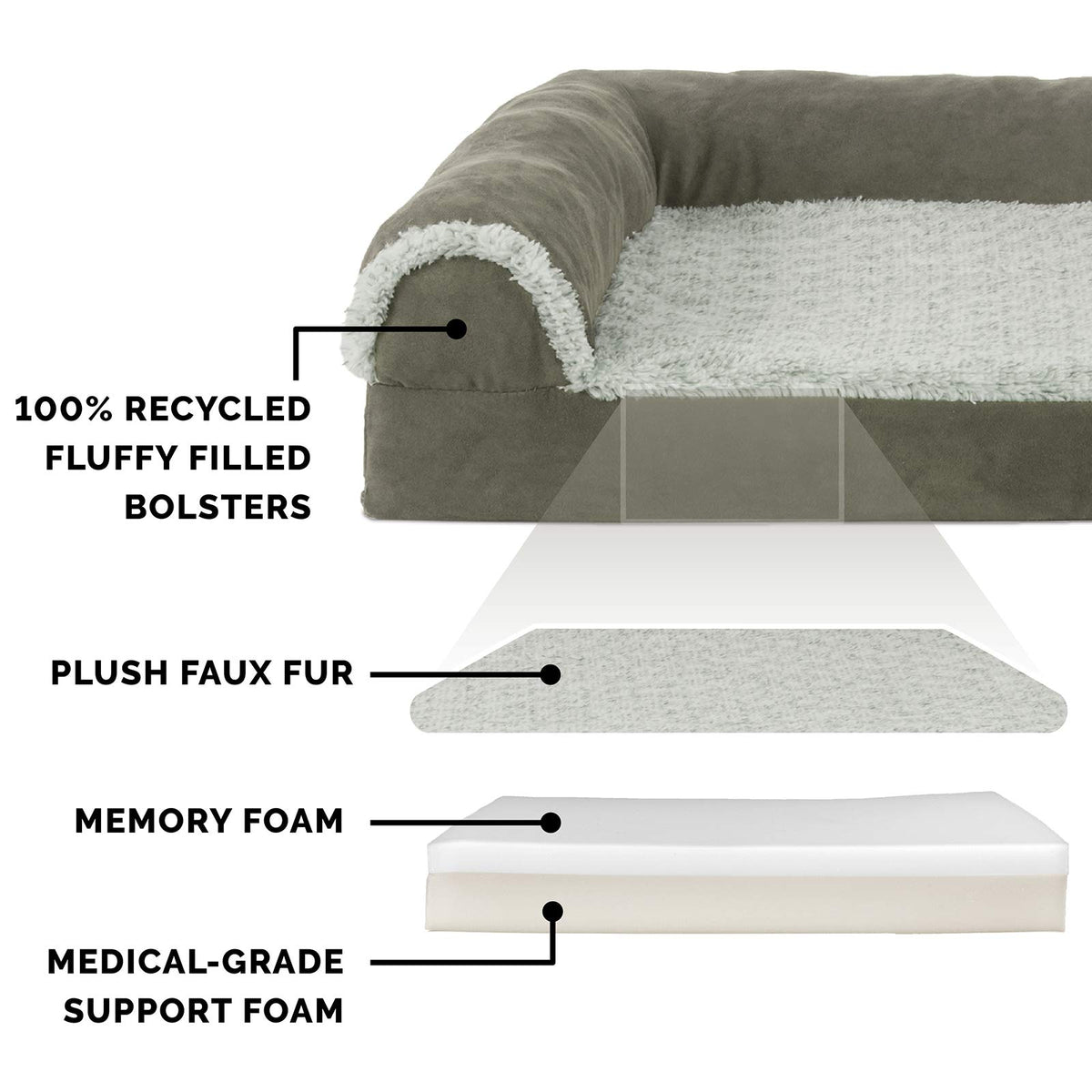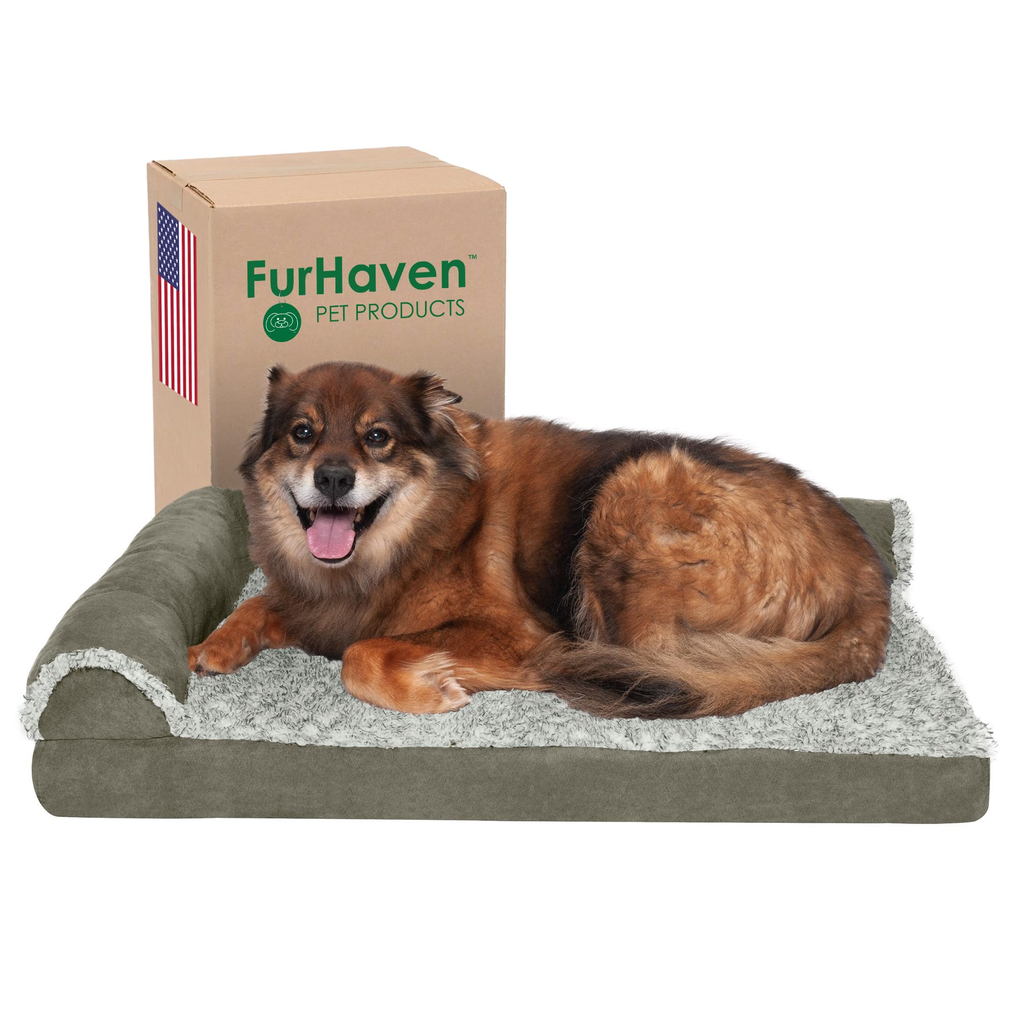 Pamper Your Pet With A Furhaven Two-Tone Faux Fur & Suede L Chaise Dog Bed! A Luxuriously Soft Faux Fur Sleep Surface Is Complemented By Suedine Covered Bolsters And Gusset. Ultra-Plush, Flecked Faux Fur Provides A Snuggly Soft Sleep Surface And Trims The Edges Of The Bolster For A Chic Flair. The Two-Tone Design Hides Dirt And Pet Dander Better Than Traditional Plush Sleep Surfaces. The L-Shaped Bolsters Support Your Pets Back And Hips, Providing Additional Support. The L-Shape Also Provides The Perfect Nook For Pets That Like To Nest Into Comfort. The Two Raised, Rounded Bolster Ends Allow Your Pet To Lay Their Paws Or Neck On The Pillowed Edge, Helping To Align The Neck And Spine. Memory Foam Is Designed To Work With Your Pet'S Weight And Contour To Their Body Providing Better Overall Support And Relief From Painful Muscles And Joint Discomfort. Available In Various Stylish Colors And Diverse Sizing Options So Your Pet Can Sprawl And Lounge The Day In Maximum Comfort And Style. Easy To Clean. Cover Care: Remove From Core Before Washing (See Hang Tag And/Or Seam Label For Care Instructions). Foam Care: Memory Foam Is Highly Absorbent. Spot Clean With Mild Soap Or Enzyme-Based Cleaning Spray. Rinse But Do Not Soak Or Submerge. Press Out Moisture With A Dry Towel And Air Dry. A Fan May Be Used To Speed Drying. Do Not Wring Or Place In Machine Dryer. Dry Completely Before Use. Not For Unsupervised Use By Animals With Destructive Chewing Behavior.