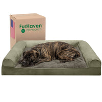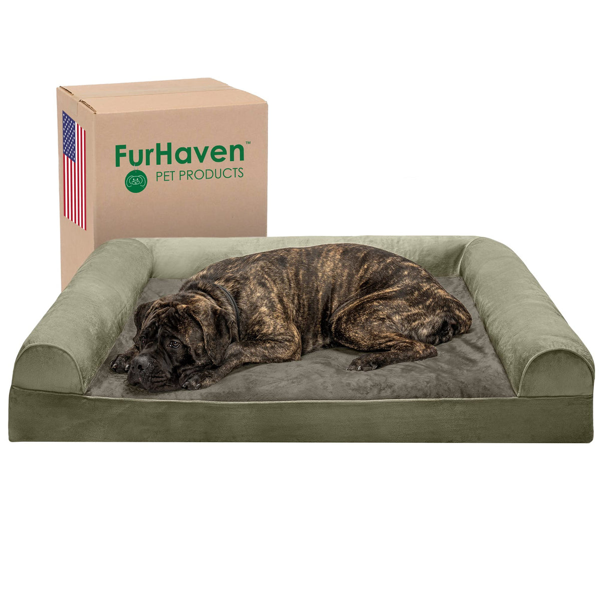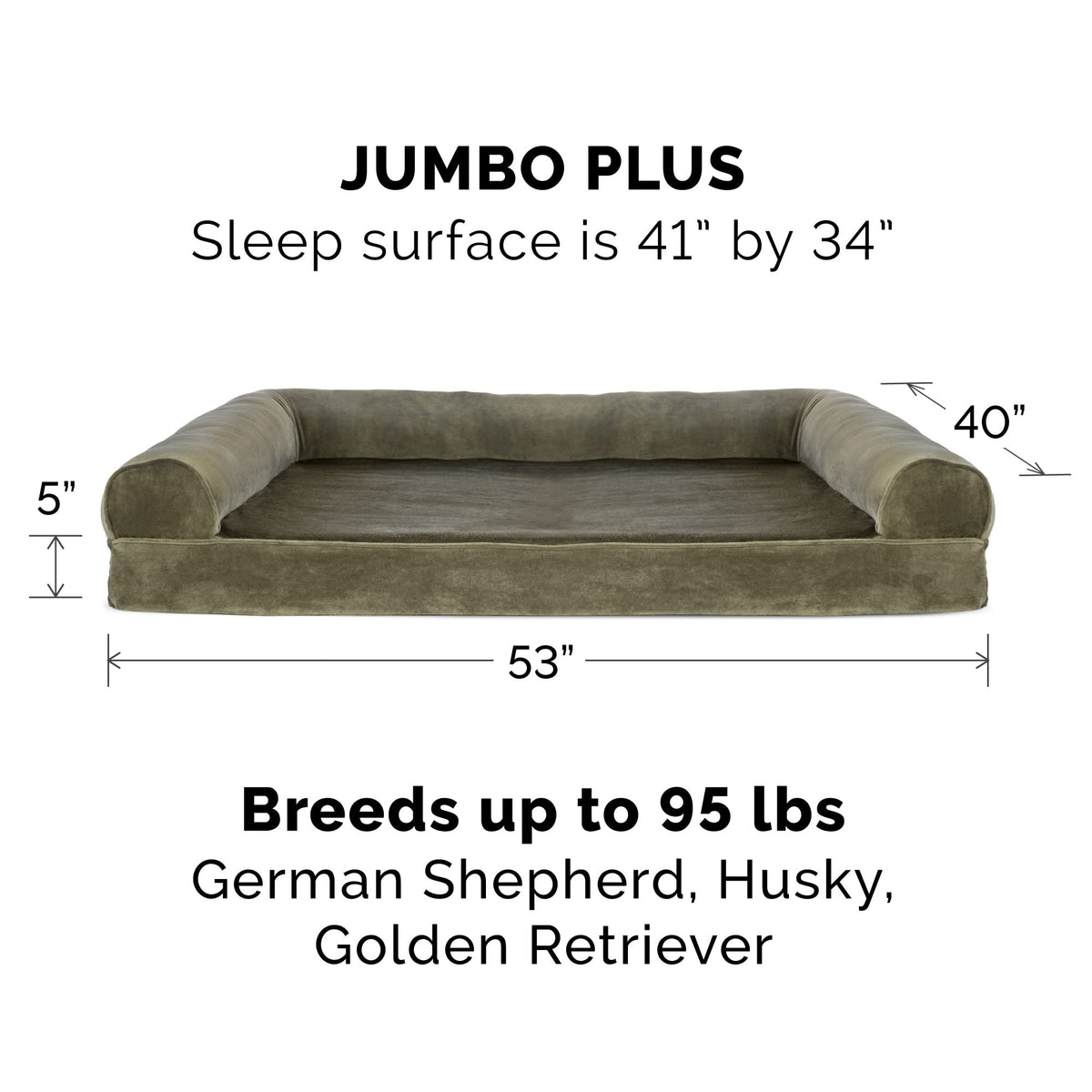 Furhaven Orthopedic Dog Bed For Large Dogs W/ Removable Bolsters & Washable Cover, For Dogs Up To 125 Lbs - Faux Fur & Velvet Sofa - Dark Sage, Jumbo Plus/Xxl