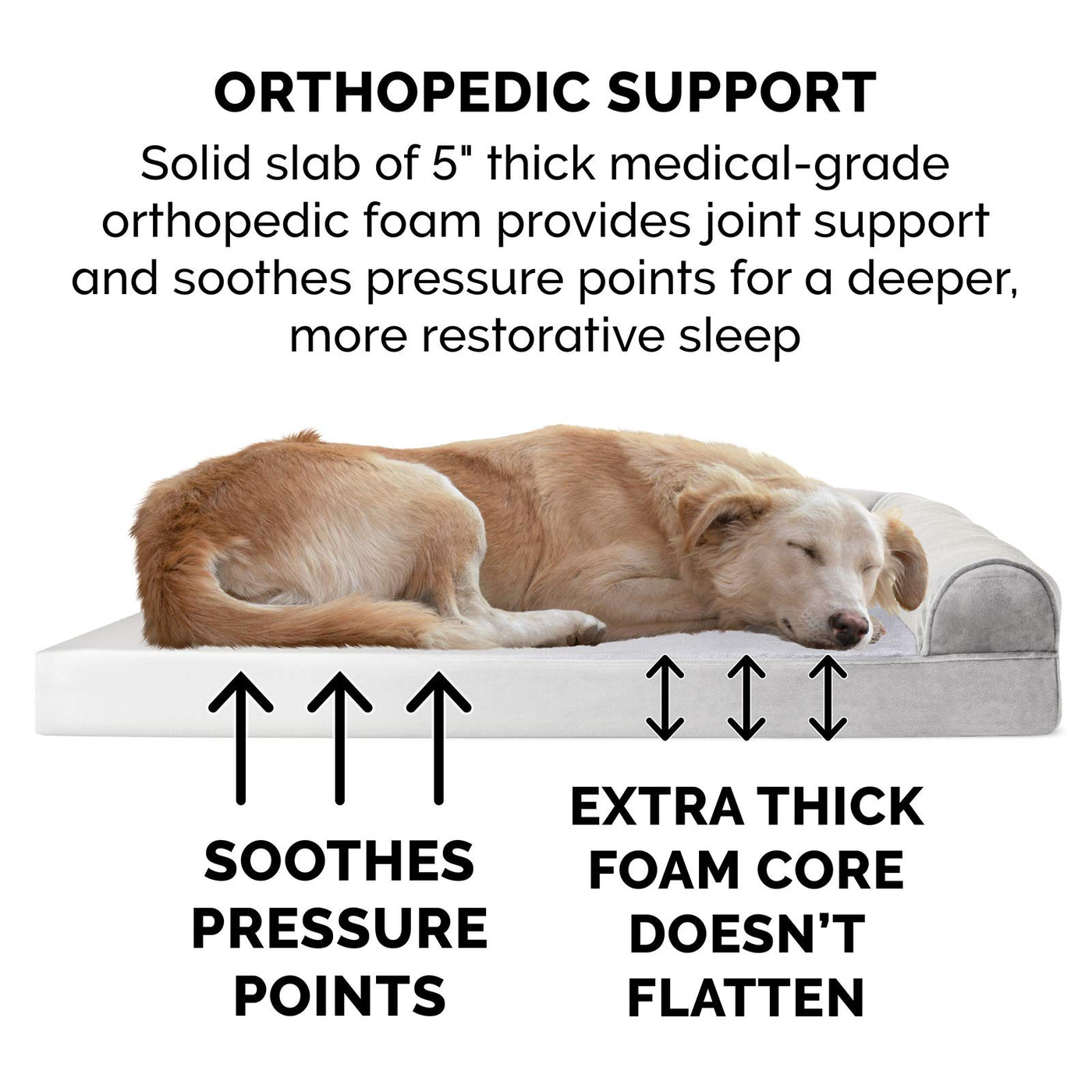 Finally, a solution for your arthritic pet's pain! This Furhaven Faux Fur & Velvet Sofa-Style Dog Bed has a soft, faux fur sleep surface providing your pet comfort while the orthopedic (egg crate) foam base supports your dog's joints and pressure points. The Jumbo Plus option, for larger breeds, features solid slab orthopedic foam for greater support and comfort. Luxurious velvet gusset is dyed to match the faux fur sleep surface, creating a bed fit for a furry king or queen. The sofa bed has three walls to give your pup a variety of positions to lay in while remaining comfortable. Your best friend deserves a good night’s rest and now, it’s possible. With their very own orthopedic pet bed, your loved one will have maximum comfort for a great night's rest. Any position will do on this sofa bed! The squishy bolsters on three sides provide comfort for your pet to lay down in a variety of ways while always being provided the support they need. For example, your dog can lay on their tummy and use one of the bolsters as a pillow for a cozy night of sweet dreams. Cats love our sofa beds also! The bolsters provide cozy walls for your feline friend to snuggle into for their cat naps. This luxurious orthopedic pet couch provides a cozy spot for your companion to snuggle up in, leaving your favorite spot on the couch all for you! Easy to clean. Cover care: Remove from core before washing (see seam label for fabric care instructions). Foam care: Spot clean with mild soap; rinse. Blot, then air dry. Do not wring. Not for unsupervised use by animals with chewing behaviors.