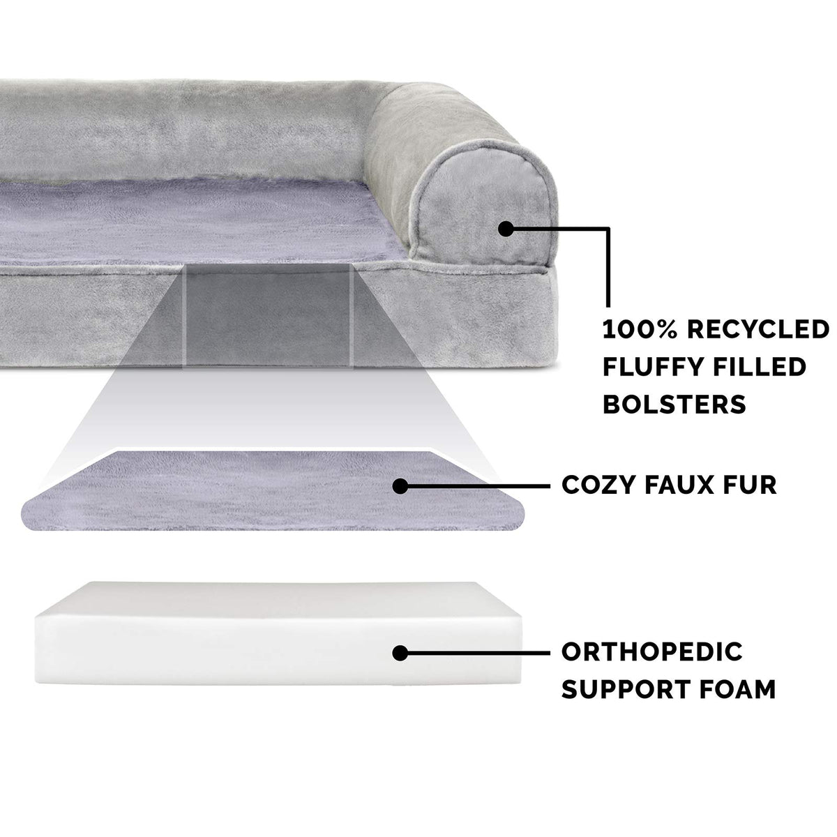 Furhaven Orthopedic Dog Bed For Large Dogs W/ Removable Bolsters & Washable Cover, For Dogs Up To 125 Lbs - Faux Fur & Velvet Sofa - Smoke Gray, Jumbo Plus/Xxl