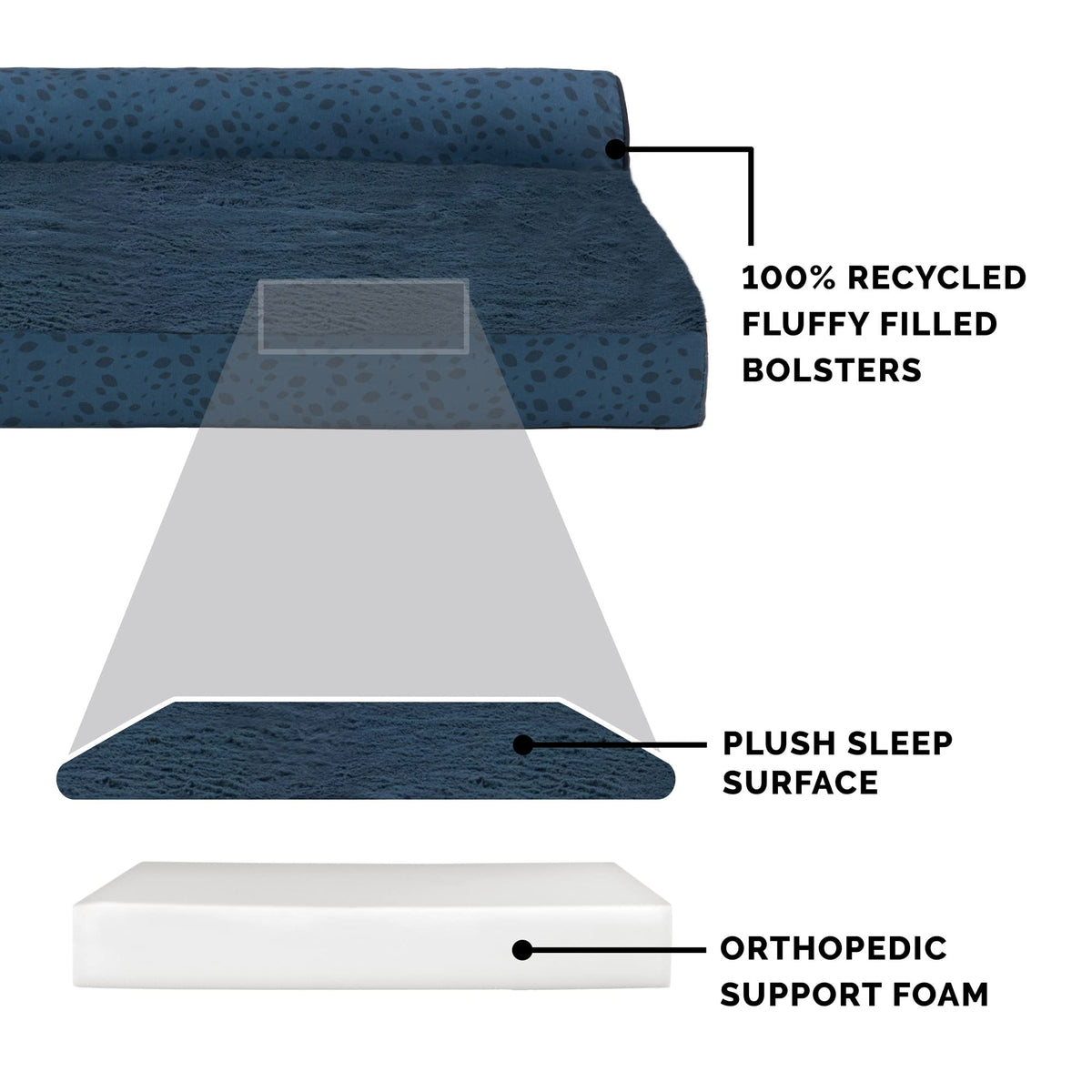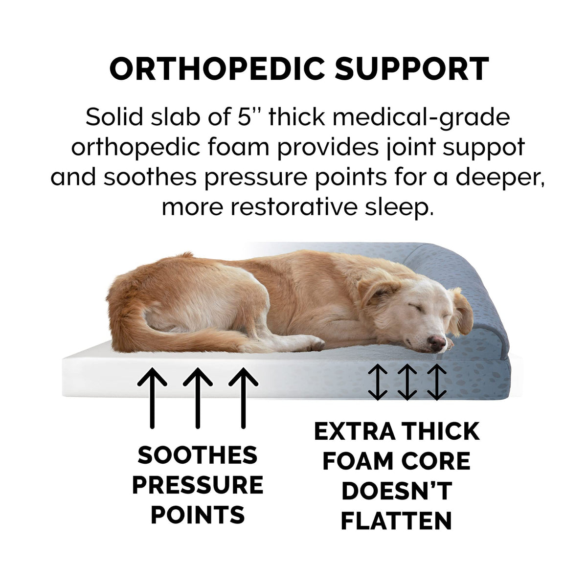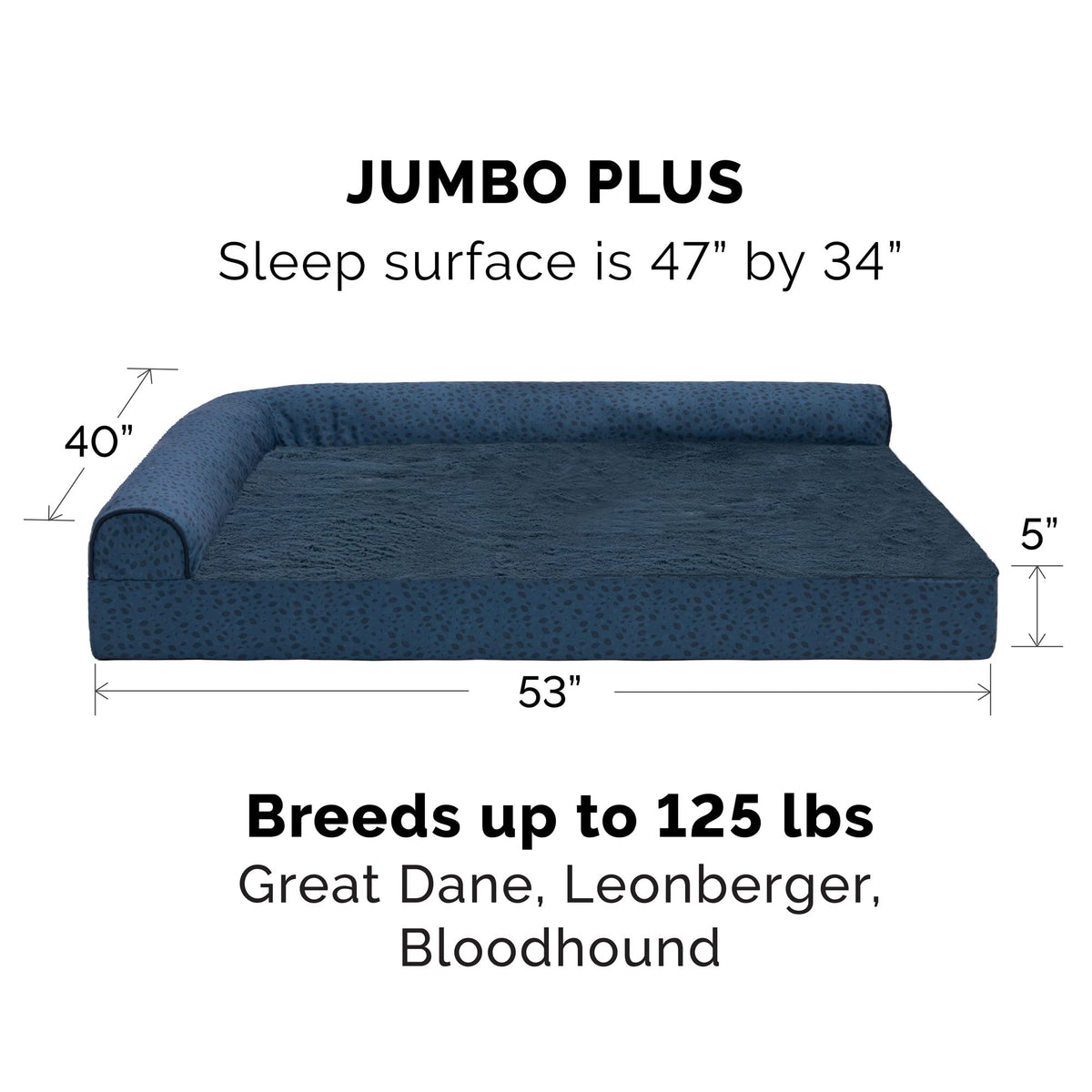 Pamper Your Pet With A New Furhaven Plush & Almond Print L Shaped Chaise Dog Bed! The Sleep Surface Is Lined With Soft Plush Faux Fur For Cozy Nighttime Snuggles. The L-Shaped Bolsters Support Your Pets Back And Hips, Providing Additional Support. The L-Shape Also Provides The Perfect Nook For Pets That Like To Nest Into Comfort. The Two Raised, Rounded Bolster Ends Allow Your Pet To Lay Their Paws Or Neck On The Pillowed Edge, Helping To Align The Neck And Spine. The Orthopedic (Egg Crate) Foam Base Supports Your Pet'S Joints, Cushions Pressure Points, And Helps Improve Air Circulation For Optimum Rest. The Jumbo Plus Option, For Larger Breeds, Features A Solid Slab Orthopedic Foam For Greater Support And Comfort. The Zippered Cover Is Easily Removed And Machine Washable For Your Convenience. Low Profile, Step-On Design For Easy Access By Older Or Disabled Pets. Easy To Clean. Cover Care: Remove From Core Before Washing (See Seam Label For Fabric Care Instructions). Foam Care: Spot Clean With Mild Soap; Rinse. Blot, Then Air Dry. Do Not Wring. Not For Unsupervised Use By Animals With Chewing Behaviors.