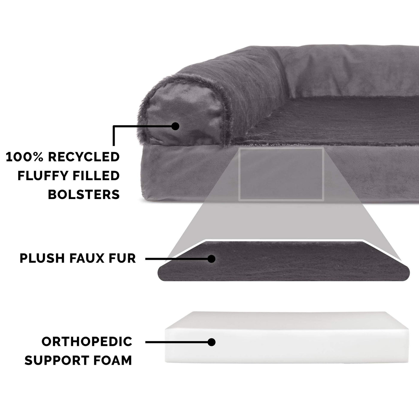 Furhaven Orthopedic Dog Bed For Large Dogs W/ Removable Bolsters & Washable Cover, For Dogs Up To 125 Lbs - Plush & Velvet L Shaped Chaise - Platinum Gray, Jumbo Plus/Xxl