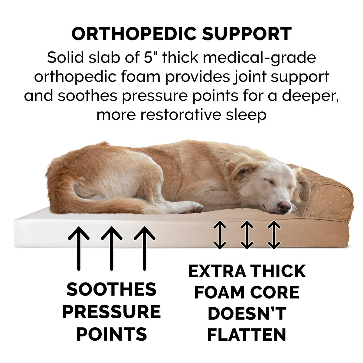 Finally, a solution for your arthritic pet's pain! The Furhaven Quilted Sofa-Style Dog Bed has a smooth surface providing your pet comfort while the orthopedic (egg crate) foam base supports your dog's joints and pressure points. The Jumbo Plus option, for larger breeds, features solid slab orthopedic foam for greater support and comfort. The sofa bed has three walls to give your pup a variety of positions to lay in while remaining comfortable. Your best friend deserves a good night’s rest and now, it’s possible. With its very own orthopedic pet bed, your loved one will have maximum comfort for a great night's rest. Any position will do on this sofa bed! The squishy bolsters on three sides provide comfort for your pup to lay down in a variety of ways while always being provided the support they need. For example, your dog can lay on their tummy and use one of the bolsters as a pillow for a cozy night of sweet dreams. This luxurious orthopedic dog couch provides a cozy spot for your companion to snuggle up in, leaving your favorite spot on the couch all for you! No more sharing the bed or finding dog hair on the couch. With soft side walls and a snuggly pinsonic quilted surface your pet won’t need to count sheep to drift into a deep slumber on this orthopedic dog couch. Easy to clean. Cover care: Remove from core before washing (see seam label for fabric care instructions). Foam care: Spot clean with mild soap; rinse. Blot, then air dry. Do not wring. Not for unsupervised use by animals with chewing behaviors.