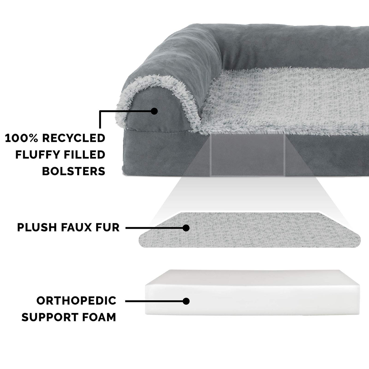 Furhaven Orthopedic Dog Bed For Large Dogs W/ Removable Bolsters & Washable Cover, For Dogs Up To 125 Lbs - Two-Tone Plush Faux