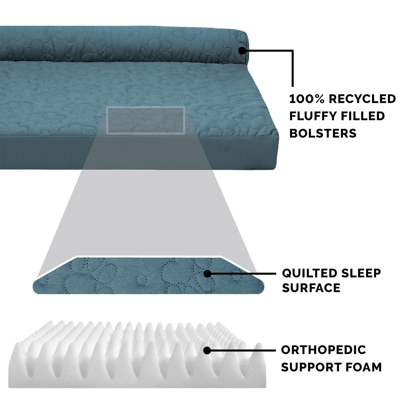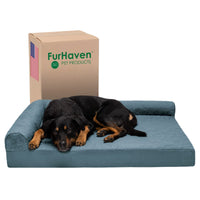 Pamper your pet with a new Furhaven Pinsonic Quilted Paw L Chaise Dog Bed! The smooth sleep surface is soft and perfect for nighttime snuggles; featuring a stylish quilted design to complement any room of your house. The L-shaped bolsters support your pet’s back and hips, providing additional support. The L-shape also provides the perfect nook for pets that like to nest into comfort. The two raised, rounded bolster ends allow your pet to lay their paws or neck on the pillowed edge, helping to align the neck and spine. An orthopedic foam base features egg-crate foam that alleviates aching joints and provides soothing comfort to pressure points. The zippered cover is easily removed and machine washable for your convenience. Available in various stylish colors and diverse sizing options so your pet can sprawl and lounge the day in maximum comfort and style. Low profile, step-on design for easy access by older or disabled pets. Easy to clean. Cover care: Remove from core before washing (see seam label for fabric care instructions). Foam care: Spot clean with mild soap; rinse. Blot, then air dry. Do not wring. Not for unsupervised use by animals with chewing behaviors.