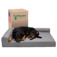 Pamper your pet with a new Furhaven Pinsonic Quilted Paw L Chaise Dog Bed! The smooth sleep surface is soft and perfect for nighttime snuggles; featuring a stylish quilted design to complement any room of your house. The L-shaped bolsters support your pet’s back and hips, providing additional support. The L-shape also provides the perfect nook for pets that like to nest into comfort. The two raised, rounded bolster ends allow your pet to lay their paws or neck on the pillowed edge, helping to align the neck and spine. An orthopedic foam base features egg-crate foam that alleviates aching joints and provides soothing comfort to pressure points. The zippered cover is easily removed and machine washable for your convenience. Available in various stylish colors and diverse sizing options so your pet can sprawl and lounge the day in maximum comfort and style. Low profile, step-on design for easy access by older or disabled pets. Easy to clean. Cover care: Remove from core before washing (see seam label for fabric care instructions). Foam care: Spot clean with mild soap; rinse. Blot, then air dry. Do not wring. Not for unsupervised use by animals with chewing behaviors.