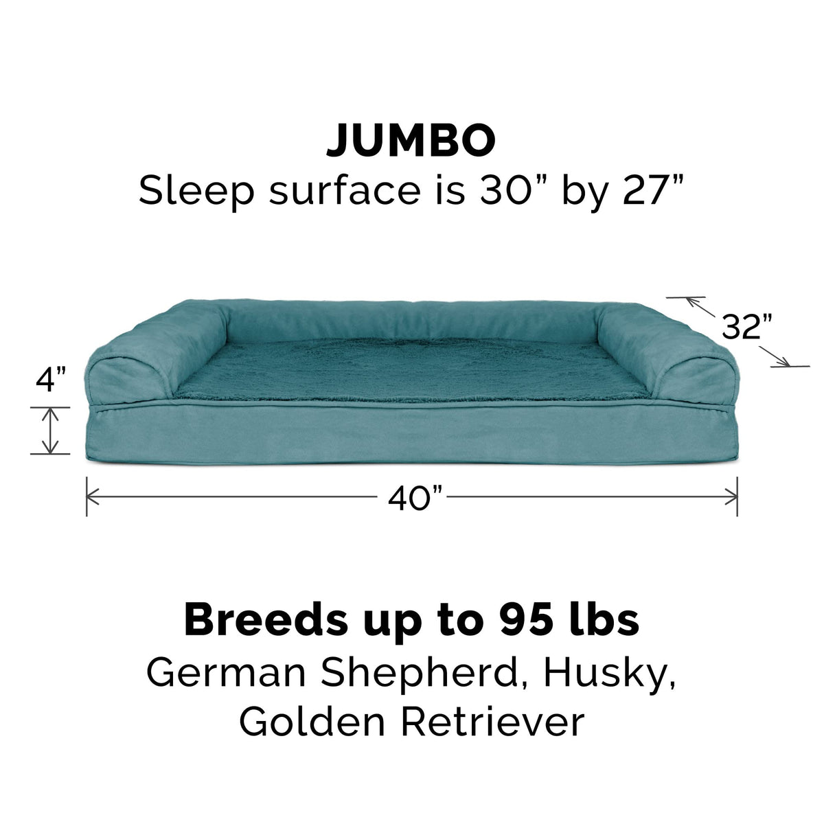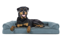 Perfect for pets young and old, the Furhaven Plush & Suede Sofa-Style Dog Bed is designed to provide your loved one with maximum comfort for a good night’s rest. With a soft, plush faux fur sleeping surface your dog will be more snug than a bug in a rug! The orthopedic (egg crate) foam base supports your pets joints and pressure points making this pet bed ideal for arthritic pets who have trouble getting comfortable. The Jumbo Plus option, for larger breeds, features solid slab orthopedic foam for greater support and comfort. Give your companion the luxury they deserve with this orthopedic dog bed. They’ll love the suedine bolsters' soft but supportive feel provided on three sides giving them a variety of cozy positions to snuggle into. The bolsters are a great pillow for your pet to lie their head on or, for pets that like to cozy into your couch, they can snuggle close to the sides for a sense of security and warmth. Whatever position your pet likes to lay in, they’ll find nothing but comfort and sweet dreams! With the feel of a couch, your pet will love having their own space to curl into while you’ll love having your favorite spot on the couch back! No more unwanted pet fur and scratches on your furniture. It’s great for older pets who may be unable to jump on the couch and have had to lie on the floor. Easy to clean. Cover care: Remove from core before washing (see seam label for fabric care instructions). Foam care: Spot clean with mild soap; rinse. Blot, then air dry. Do not wring. Not for unsupervised use by animals with chewing behaviors.