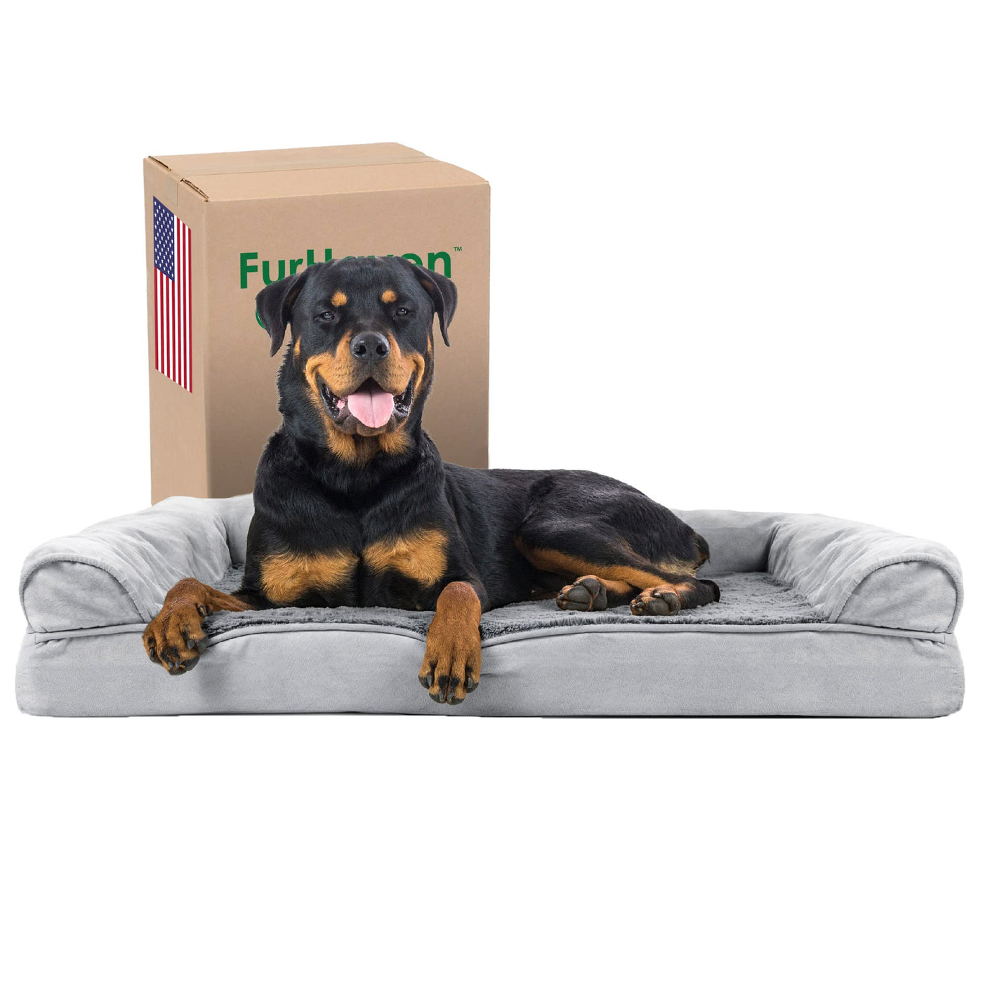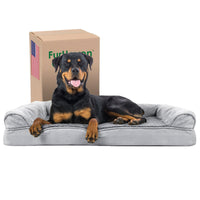Perfect for pets young and old, the Furhaven Plush & Suede Sofa-Style Dog Bed is designed to provide your loved one with maximum comfort for a good night’s rest. With a soft, plush faux fur sleeping surface your dog will be more snug than a bug in a rug! The orthopedic (egg crate) foam base supports your pets joints and pressure points making this pet bed ideal for arthritic pets who have trouble getting comfortable. The Jumbo Plus option, for larger breeds, features solid slab orthopedic foam for greater support and comfort. Give your companion the luxury they deserve with this orthopedic dog bed. They’ll love the suedine bolsters' soft but supportive feel provided on three sides giving them a variety of cozy positions to snuggle into. The bolsters are a great pillow for your pet to lie their head on or, for pets that like to cozy into your couch, they can snuggle close to the sides for a sense of security and warmth. Whatever position your pet likes to lay in, they’ll find nothing but comfort and sweet dreams! With the feel of a couch, your pet will love having their own space to curl into while you’ll love having your favorite spot on the couch back! No more unwanted pet fur and scratches on your furniture. It’s great for older pets who may be unable to jump on the couch and have had to lie on the floor. Easy to clean. Cover care: Remove from core before washing (see seam label for fabric care instructions). Foam care: Spot clean with mild soap; rinse. Blot, then air dry. Do not wring. Not for unsupervised use by animals with chewing behaviors.