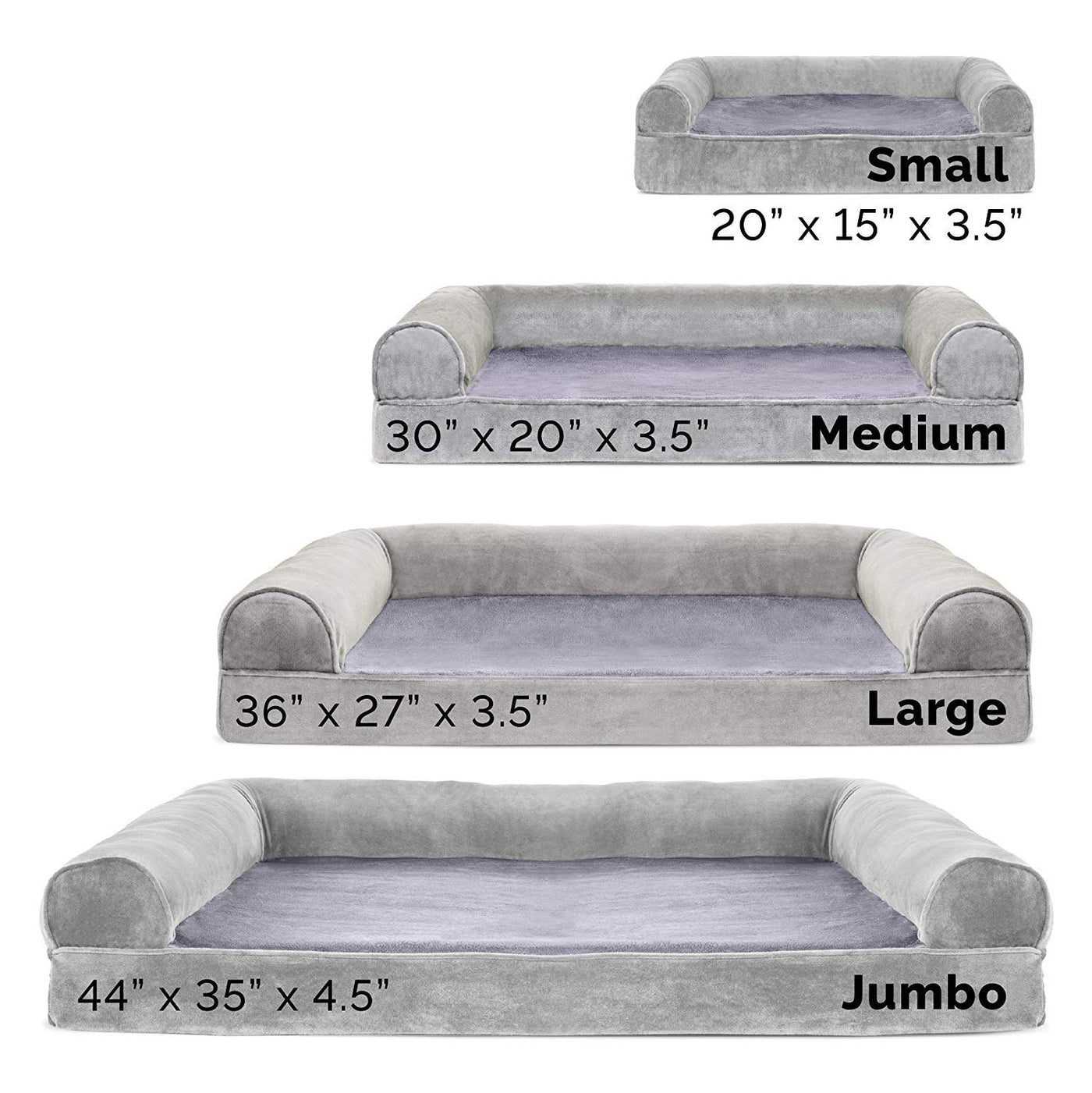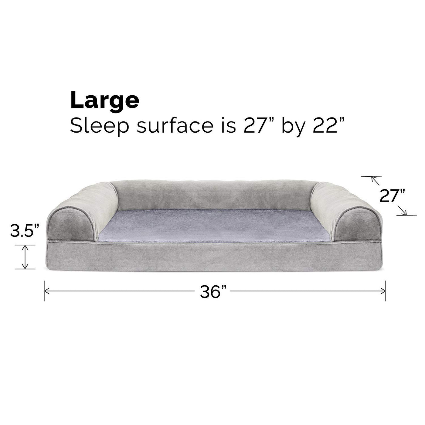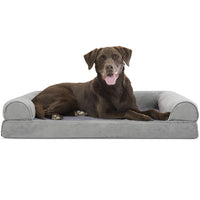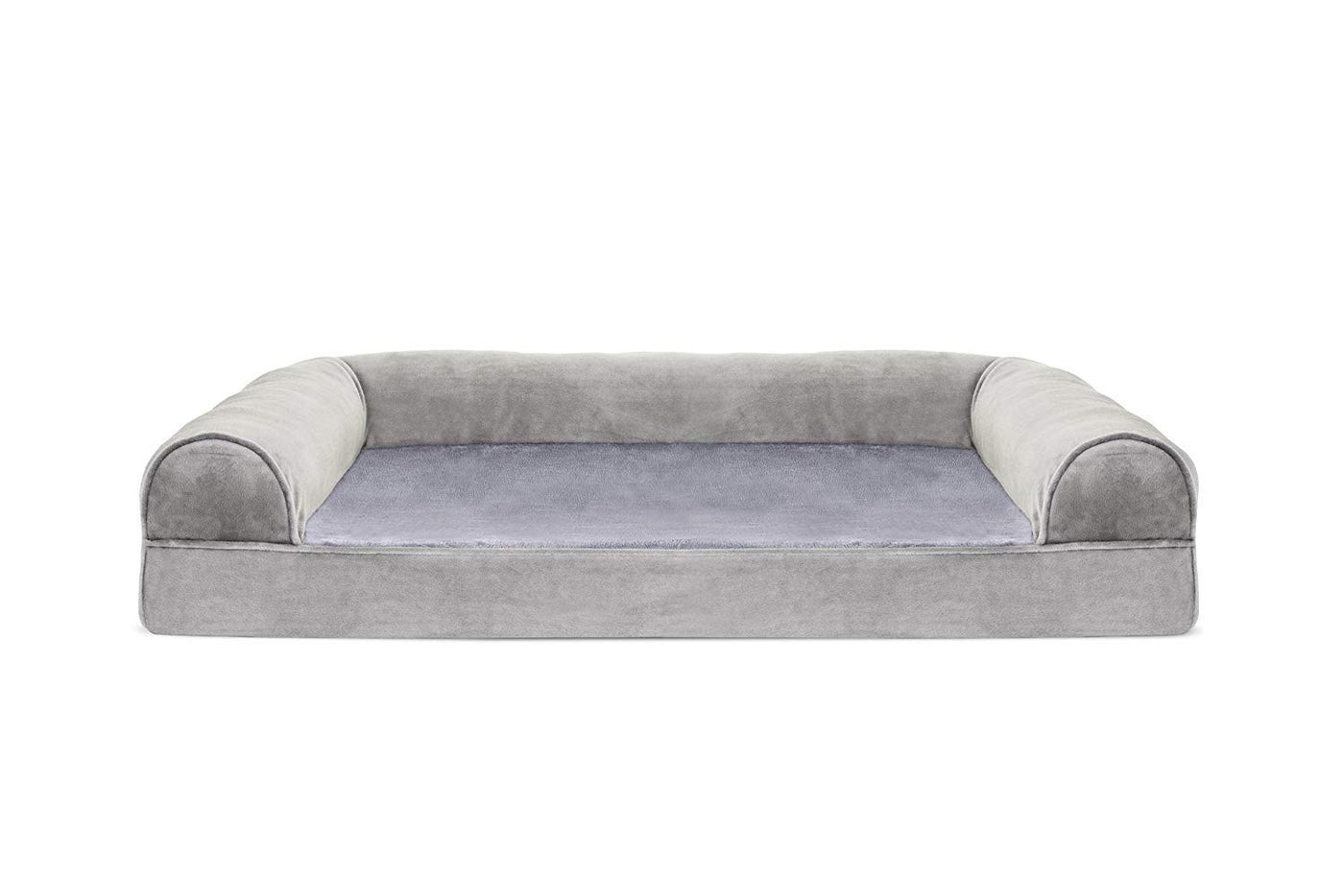 Finally, a solution for your arthritic pet's pain! This Furhaven Faux Fur & Velvet Sofa-Style Dog Bed has a soft, faux fur sleep surface providing your pet comfort while the orthopedic (egg crate) foam base supports your dog's joints and pressure points. The Jumbo Plus option, for larger breeds, features solid slab orthopedic foam for greater support and comfort. Luxurious velvet gusset is dyed to match the faux fur sleep surface, creating a bed fit for a furry king or queen. The sofa bed has three walls to give your pup a variety of positions to lay in while remaining comfortable. Your best friend deserves a good night’s rest and now, it’s possible. With their very own orthopedic pet bed, your loved one will have maximum comfort for a great night's rest. Any position will do on this sofa bed! The squishy bolsters on three sides provide comfort for your pet to lay down in a variety of ways while always being provided the support they need. For example, your dog can lay on their tummy and use one of the bolsters as a pillow for a cozy night of sweet dreams. Cats love our sofa beds also! The bolsters provide cozy walls for your feline friend to snuggle into for their cat naps. This luxurious orthopedic pet couch provides a cozy spot for your companion to snuggle up in, leaving your favorite spot on the couch all for you! Easy to clean. Cover care: Remove from core before washing (see seam label for fabric care instructions). Foam care: Spot clean with mild soap; rinse. Blot, then air dry. Do not wring. Not for unsupervised use by animals with chewing behaviors.