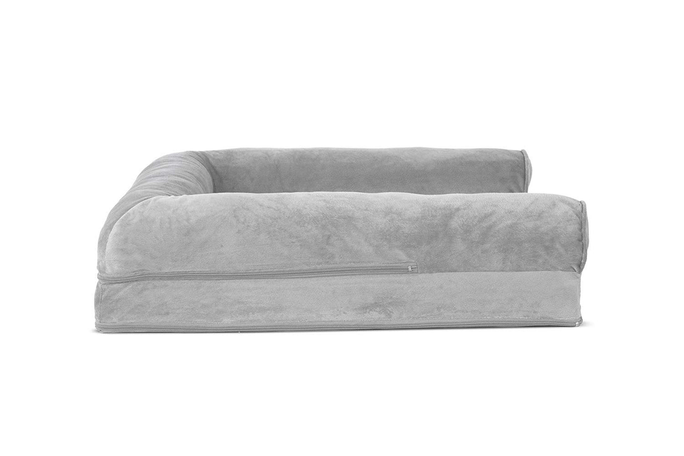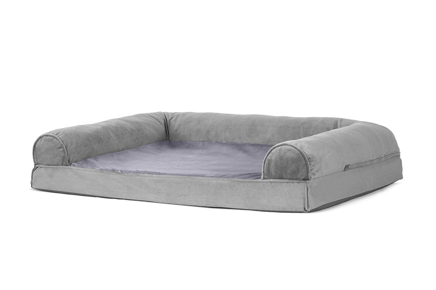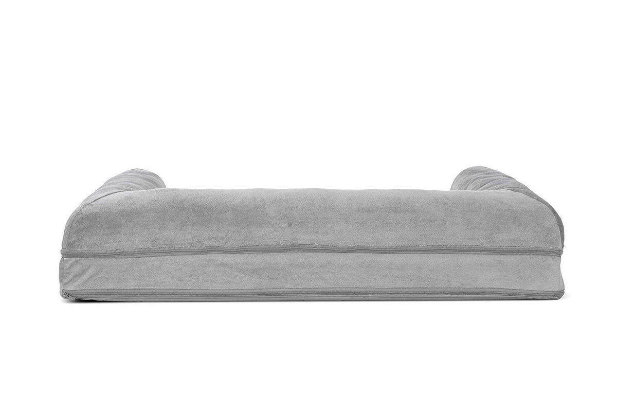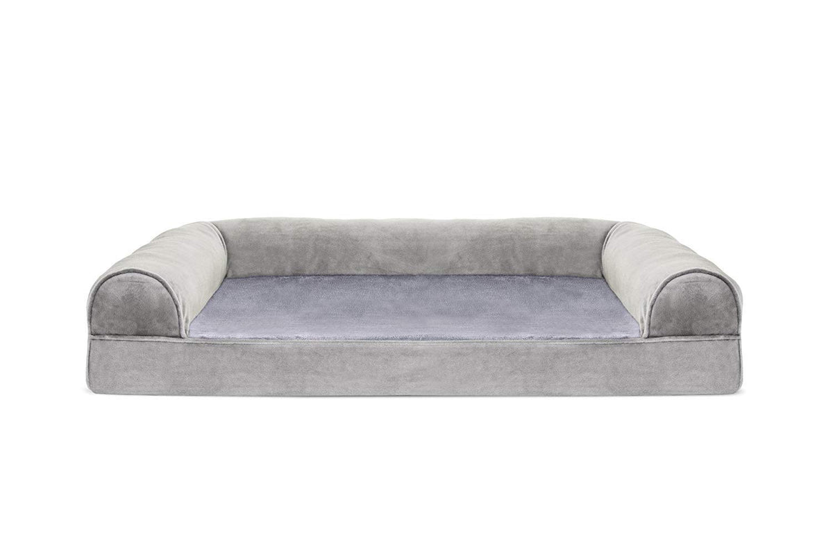Furhaven Orthopedic Dog Bed For Large/Medium Dogs W/ Removable Bolsters & Washable Cover, For Dogs Up To 55 Lbs - Faux Fur & Velvet Sofa - Smoke Gray, Large
