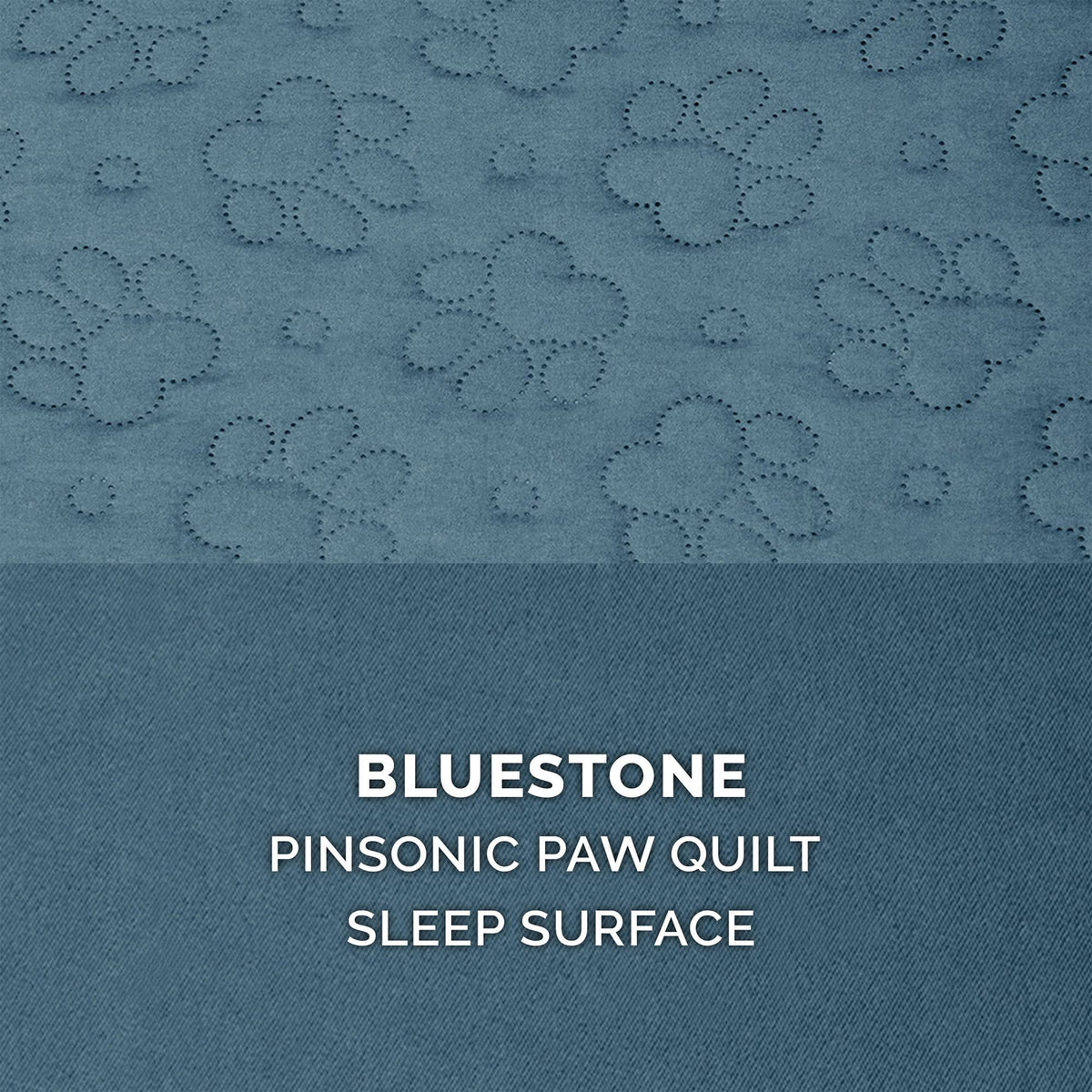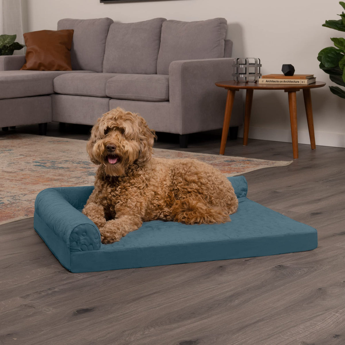 Furhaven Orthopedic Dog Bed For Large/Medium Dogs W/ Removable Bolsters & Washable Cover, For Dogs Up To 55 Lbs - Pinsonic Quilted Paw L Shaped Chaise - Bluestone, Large