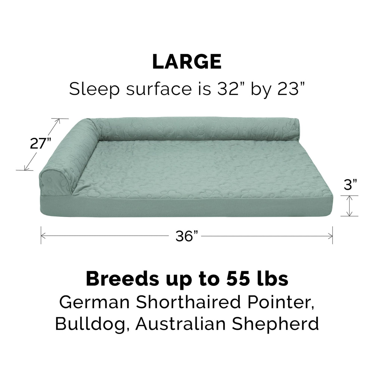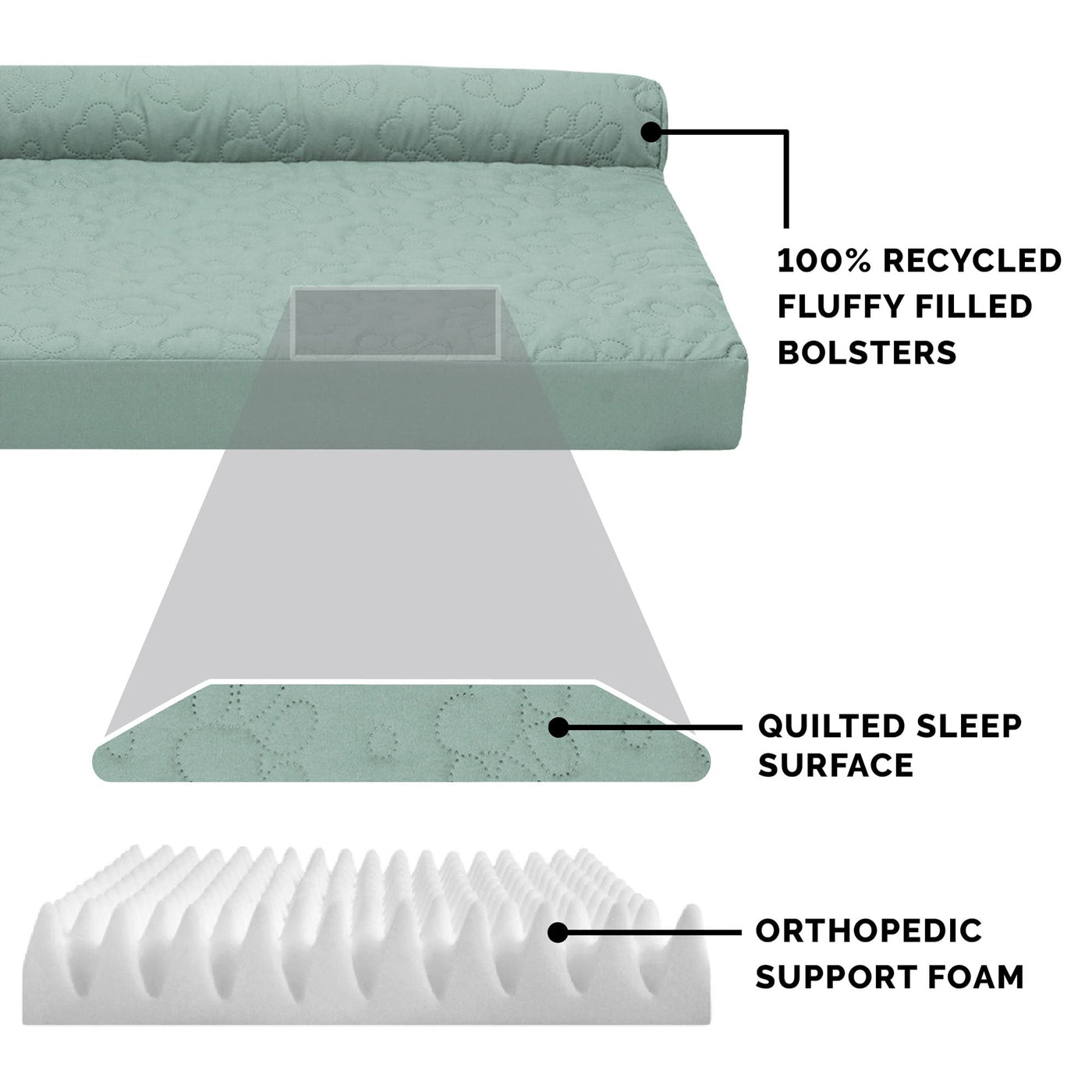 Furhaven Orthopedic Dog Bed For Large/Medium Dogs W/ Removable Bolsters & Washable Cover, For Dogs Up To 55 Lbs - Pinsonic Quilted Paw L Shaped Chaise - Iceberg Green, Large