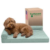 Pamper your pet with a new Furhaven Pinsonic Quilted Paw L Chaise Dog Bed! The smooth sleep surface is soft and perfect for nighttime snuggles; featuring a stylish quilted design to complement any room of your house. The L-shaped bolsters support your pet’s back and hips, providing additional support. The L-shape also provides the perfect nook for pets that like to nest into comfort. The two raised, rounded bolster ends allow your pet to lay their paws or neck on the pillowed edge, helping to align the neck and spine. An orthopedic foam base features egg-crate foam that alleviates aching joints and provides soothing comfort to pressure points. The zippered cover is easily removed and machine washable for your convenience. Available in various stylish colors and diverse sizing options so your pet can sprawl and lounge the day in maximum comfort and style. Low profile, step-on design for easy access by older or disabled pets. Easy to clean. Cover care: Remove from core before washing (see seam label for fabric care instructions). Foam care: Spot clean with mild soap; rinse. Blot, then air dry. Do not wring. Not for unsupervised use by animals with chewing behaviors.