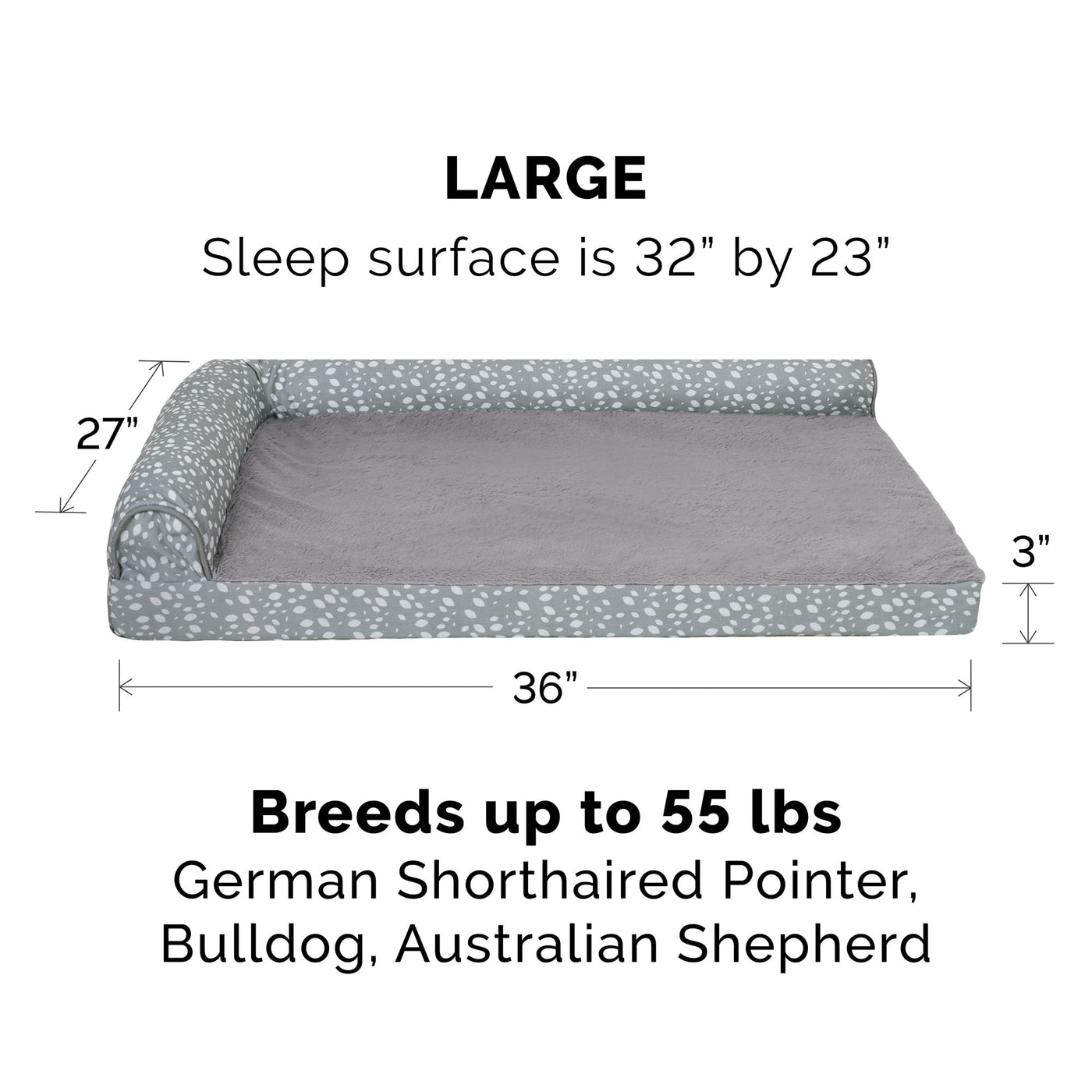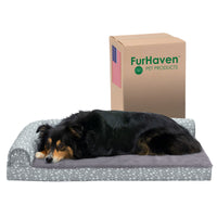 Pamper Your Pet With A New Furhaven Plush & Almond Print L Shaped Chaise Dog Bed! The Sleep Surface Is Lined With Soft Plush Faux Fur For Cozy Nighttime Snuggles. The L-Shaped Bolsters Support Your Pets Back And Hips, Providing Additional Support. The L-Shape Also Provides The Perfect Nook For Pets That Like To Nest Into Comfort. The Two Raised, Rounded Bolster Ends Allow Your Pet To Lay Their Paws Or Neck On The Pillowed Edge, Helping To Align The Neck And Spine. The Orthopedic (Egg Crate) Foam Base Supports Your Pet'S Joints, Cushions Pressure Points, And Helps Improve Air Circulation For Optimum Rest. The Jumbo Plus Option, For Larger Breeds, Features A Solid Slab Orthopedic Foam For Greater Support And Comfort. The Zippered Cover Is Easily Removed And Machine Washable For Your Convenience. Low Profile, Step-On Design For Easy Access By Older Or Disabled Pets. Easy To Clean. Cover Care: Remove From Core Before Washing (See Seam Label For Fabric Care Instructions). Foam Care: Spot Clean With Mild Soap; Rinse. Blot, Then Air Dry. Do Not Wring. Not For Unsupervised Use By Animals With Chewing Behaviors.