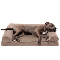 Perfect for pets young and old, the Furhaven Plush & Suede Sofa-Style Dog Bed is designed to provide your loved one with maximum comfort for a good night’s rest. With a soft, plush faux fur sleeping surface your dog will be more snug than a bug in a rug! The orthopedic (egg crate) foam base supports your pets joints and pressure points making this pet bed ideal for arthritic pets who have trouble getting comfortable. The Jumbo Plus option, for larger breeds, features solid slab orthopedic foam for greater support and comfort. Give your companion the luxury they deserve with this orthopedic dog bed. They’ll love the suedine bolsters' soft but supportive feel provided on three sides giving them a variety of cozy positions to snuggle into. The bolsters are a great pillow for your pet to lie their head on or, for pets that like to cozy into your couch, they can snuggle close to the sides for a sense of security and warmth. Whatever position your pet likes to lay in, they’ll find nothing but comfort and sweet dreams! With the feel of a couch, your pet will love having their own space to curl into while you’ll love having your favorite spot on the couch back! No more unwanted pet fur and scratches on your furniture. It’s great for older pets who may be unable to jump on the couch and have had to lie on the floor. Easy to clean. Cover care: Remove from core before washing (see seam label for fabric care instructions). Foam care: Spot clean with mild soap; rinse. Blot, then air dry. Do not wring. Not for unsupervised use by animals with chewing behaviors.