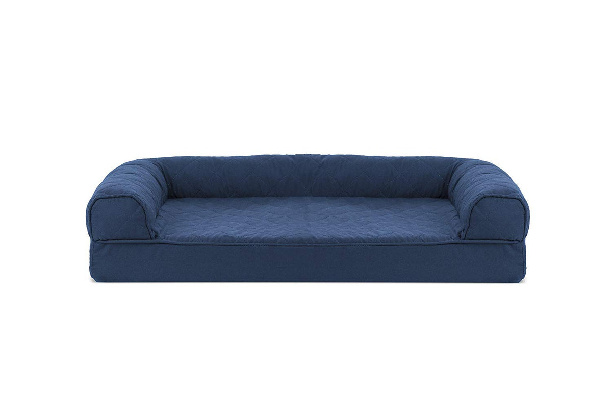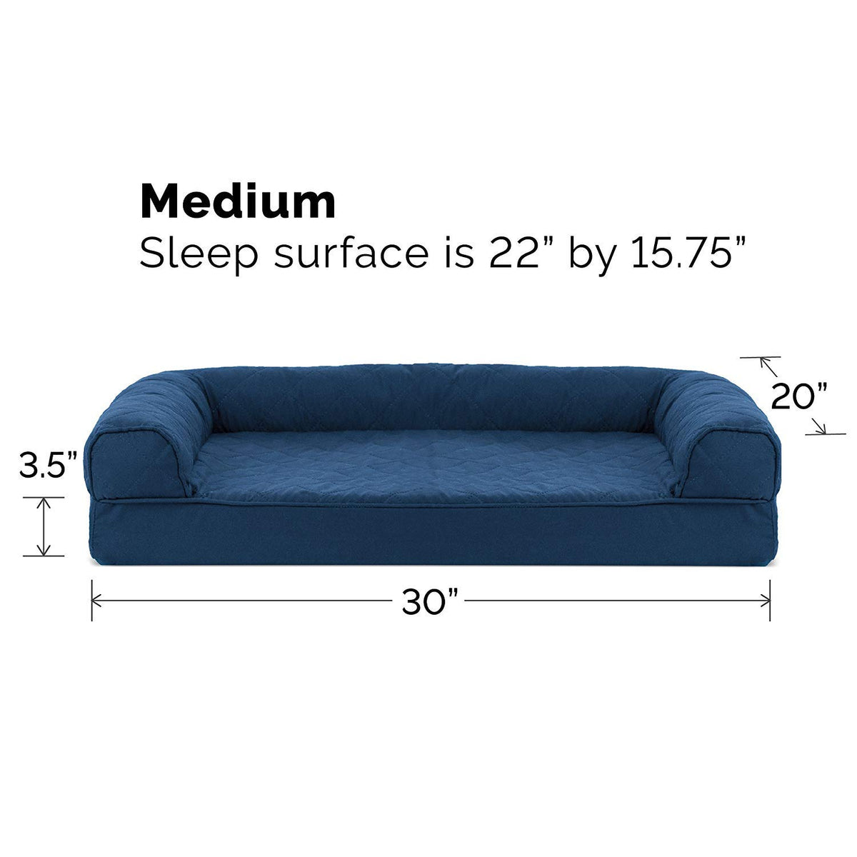 Furhaven Orthopedic Dog Bed For Medium/Small Dogs W/ Removable Bolsters & Washable Cover, For Dogs Up To 35 Lbs - Quilted Sofa - Navy (Blue), Medium
