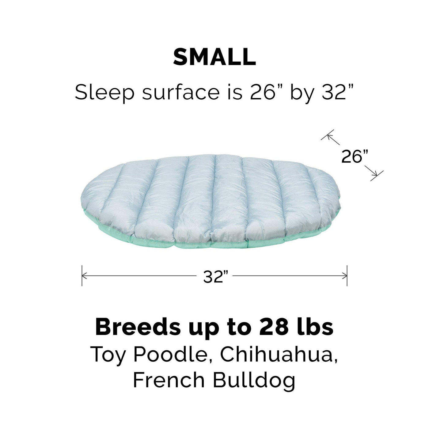 Hit the trails - or wherever your adventures take you - and lounge in comfort with Furhaven's Trail Pup Travel Dog Bed Pillow Mat. Stuffed and quilted with high-loft polyester batting, this dog bed is made from lightweight polyester material that washes easily and line dries quickly. Perfect for use at home, in the car, camping or on an RV trip, the Trail Pup Packable Pet Pillow Bed creates a soft bed for your pet to rest insulated from the cold, hard ground. Reversible two-color design made of a polyester shell that easily shakes off dirt, grass and fur for easy clean up on the go. Need a deeper clean - no problem! Machine wash cold (with like colors); line dry for best results. DO NOT use bleach! Includes lightweight, logo-printed stuff sack with handle for easy storage and packing. The small size is recommended for pets up to 28 pounds, while the large size is recommended for those up to 80 pounds.