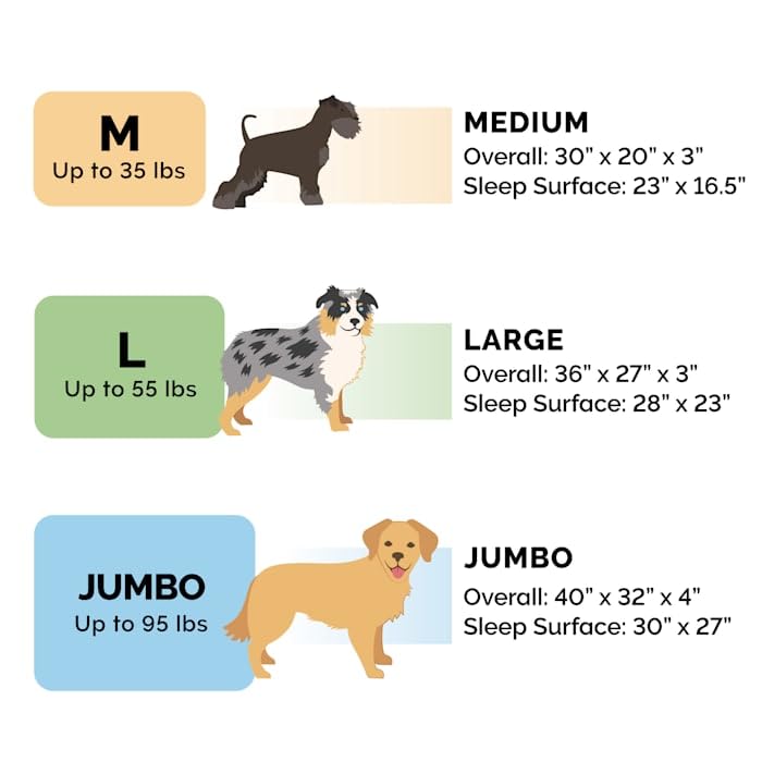 Q: What are the dimensions of the Furhaven Pillow Dog Bed?A: The Furhaven Pillow Dog Bed in Medium size measures 30 inches long, 20 inches wide, and 6 inches thick, with a sleep surface area of approximately 23 inches by 16.5 inches.