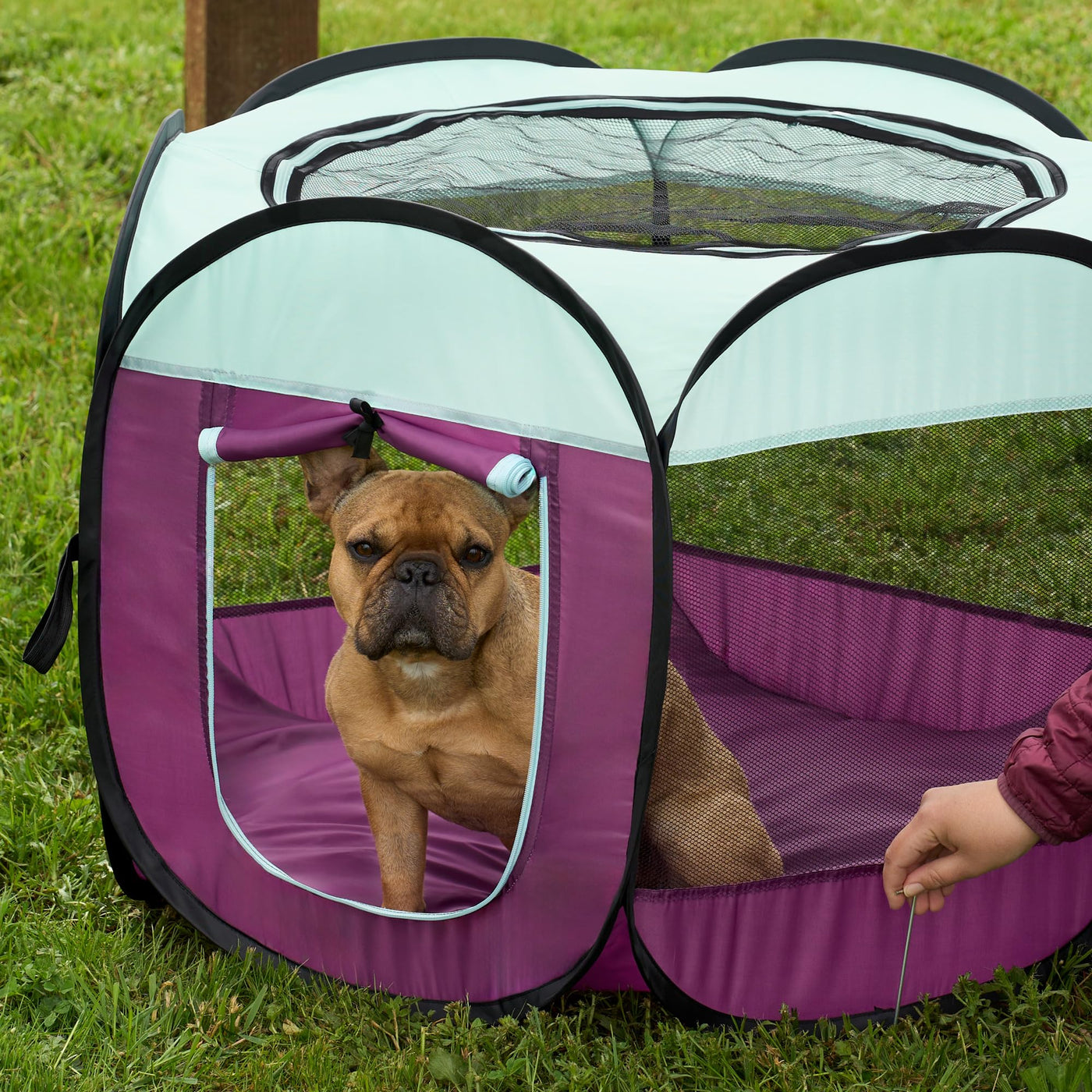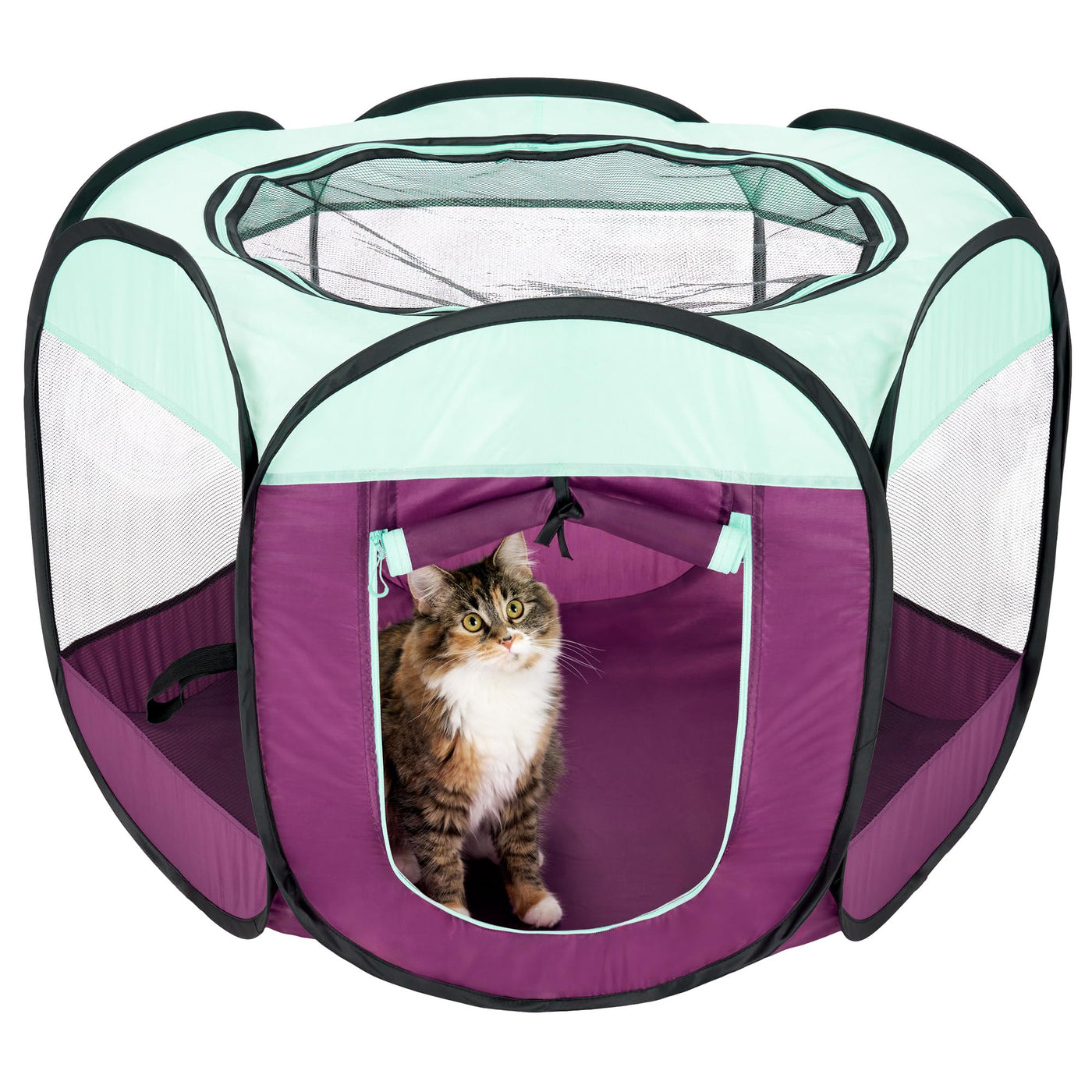 The Furhaven Indoor/Outdoor Pop Up Playpent Pet Tent Allows Pets To Play In A Contained Area; Features Removable Top, 360-Degree Open-Mesh View, And Zippered Side Entrance. The Pet Playpen Keeps Your Pets Safely With You While At The Park, Beach, And Inside Or Outside Your Home. Easy-Open, Pop-Up Assembly And Ground Stakes For A Safe, Secure Play Area. Playpen Folds Back Easily Into The Included Carry Bag. Large Open-Air Mesh Screened Windows Provide Deluxe 360-Degree View, And Lots Of Fresh Air. Top Is Fully Zippered And Removable, And The Six Side-Panels Form A Circular Shape. A Large Zippered Side-Panel Entrance Has A Fabric Tie-Up Letting Pets Easily Enter And Exit. Important: Do Not Leave Pet Unattended While In Use. This Product Is For Short-Term Containment Only, Not A Kennel Or A Crate. Only Use On Flat, Level Surface; If Included Stakes Are Not Used With Product, Interior Weights Are Suggested To Help Prevent Shifting By Larger Or More Active Animals. Easy To Clean; Just Spot-Wash With Cloth And Mild Detergent, Towel Or Air Dry