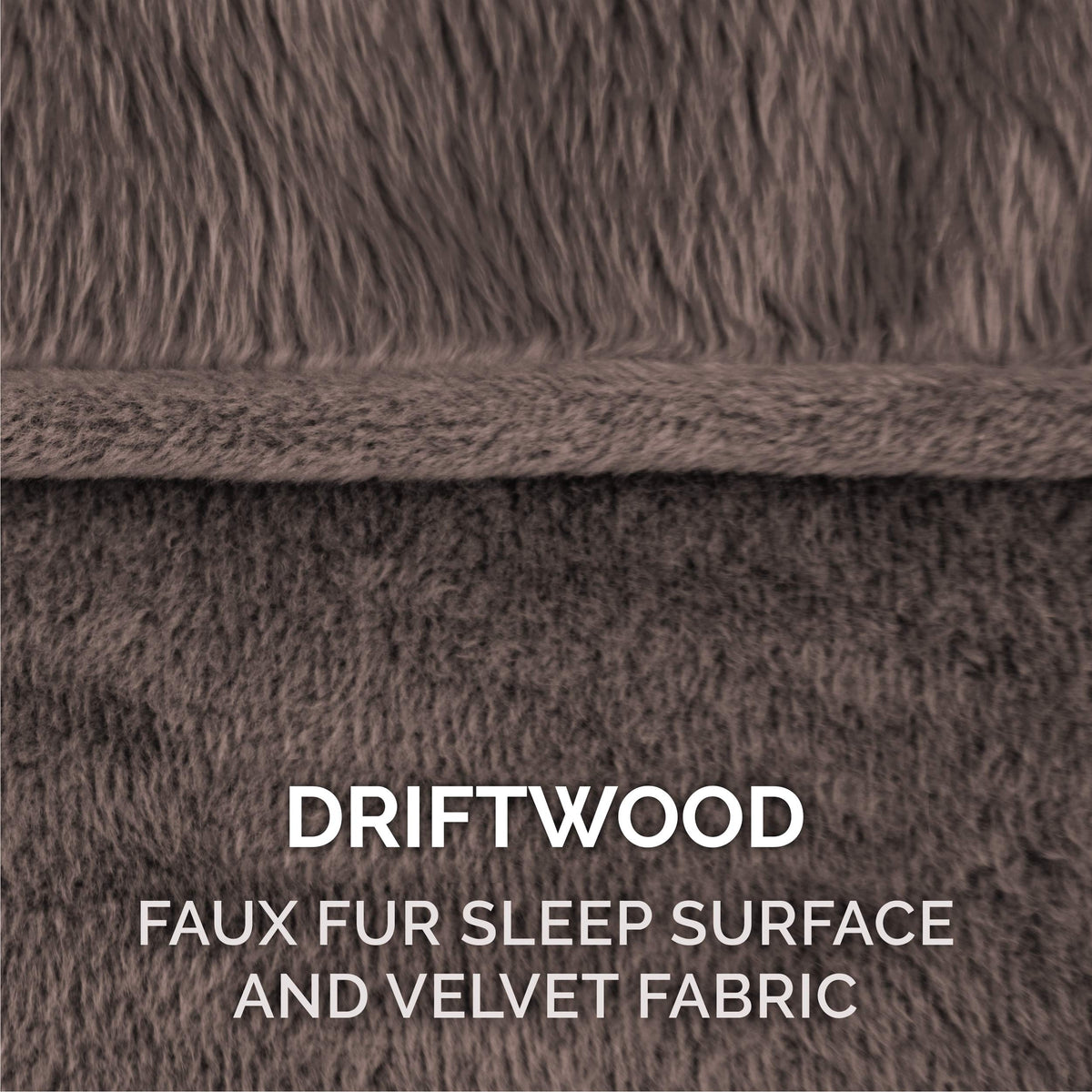 Furhaven Replacement Dog Bed Cover Faux Fur & Velvet Sofa-Style, Machine Washable - Driftwood Brown, Large