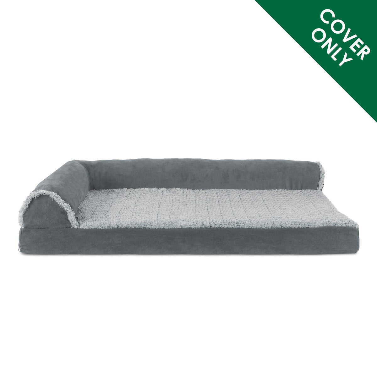 Replacement cover for Furhaven Two-Tone Faux Fur & Suede L Shaped Chaise Dog Bed. Cover will fit all bed styles - orthopedic, memory, pillow, and cooling gel! You can also use you own stuffing, such as styrofoam beads, buckwheat hulls, old towels, pillows, and others. Also consider using your old clothes! Pets will find it easier to acclimate with their new bed as they find comfort in their owners scent. Use whatever works best for you and your pet.