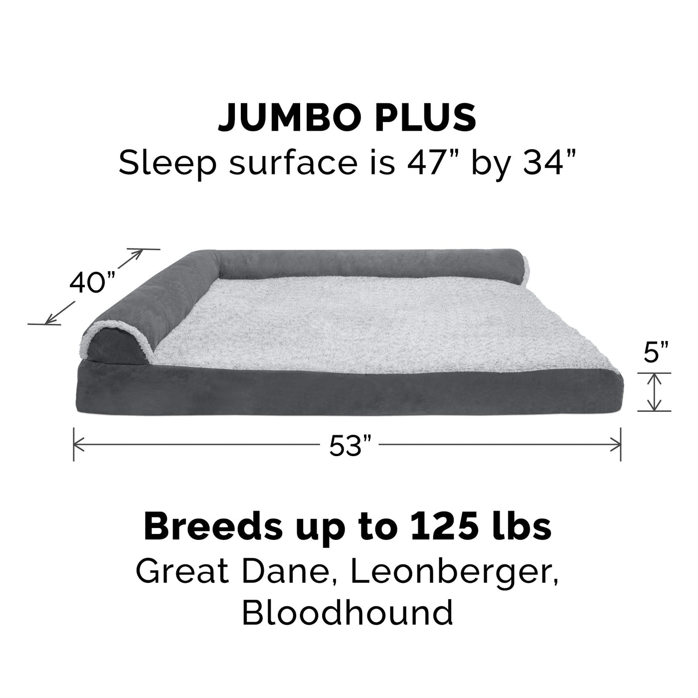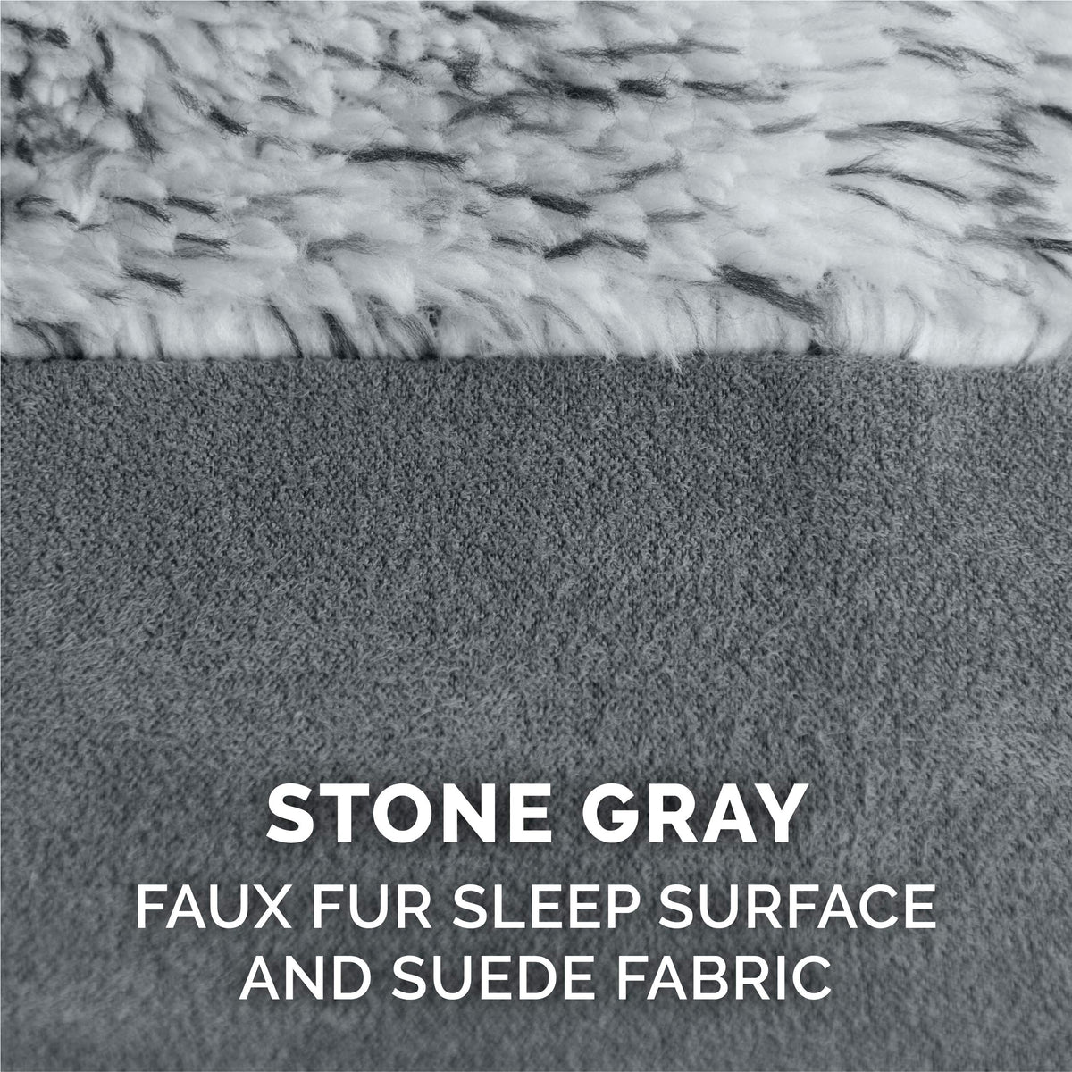 Furhaven Replacement Dog Bed Cover Two-Tone Faux Fur & Suede L Shaped Chaise, Machine Washable - Stone Gray, Jumbo Plus (XX-Larg