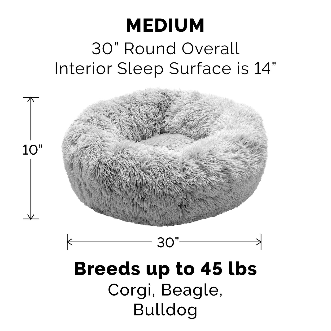 Furhaven Replacement Donut Dog Bed Cover Plush Long Faux Fur Calming Cuddler, Machine Washable - Misty Gray, Medium