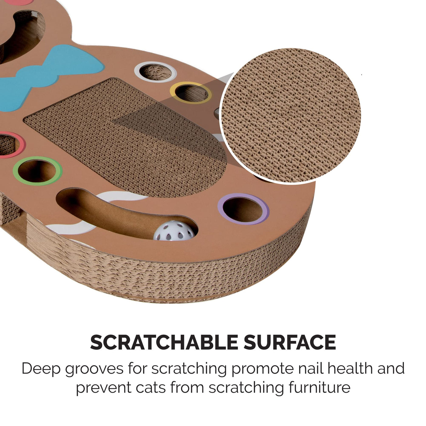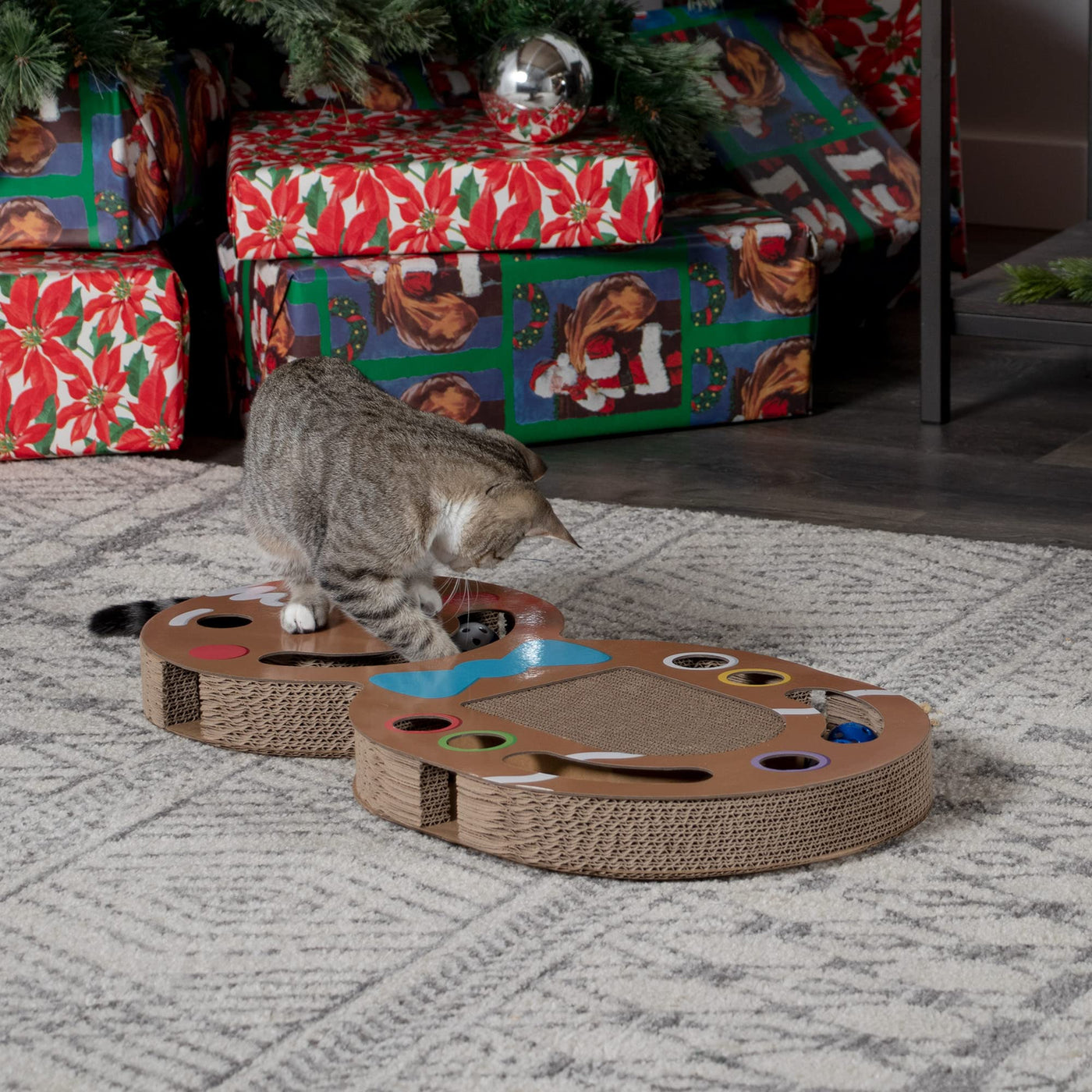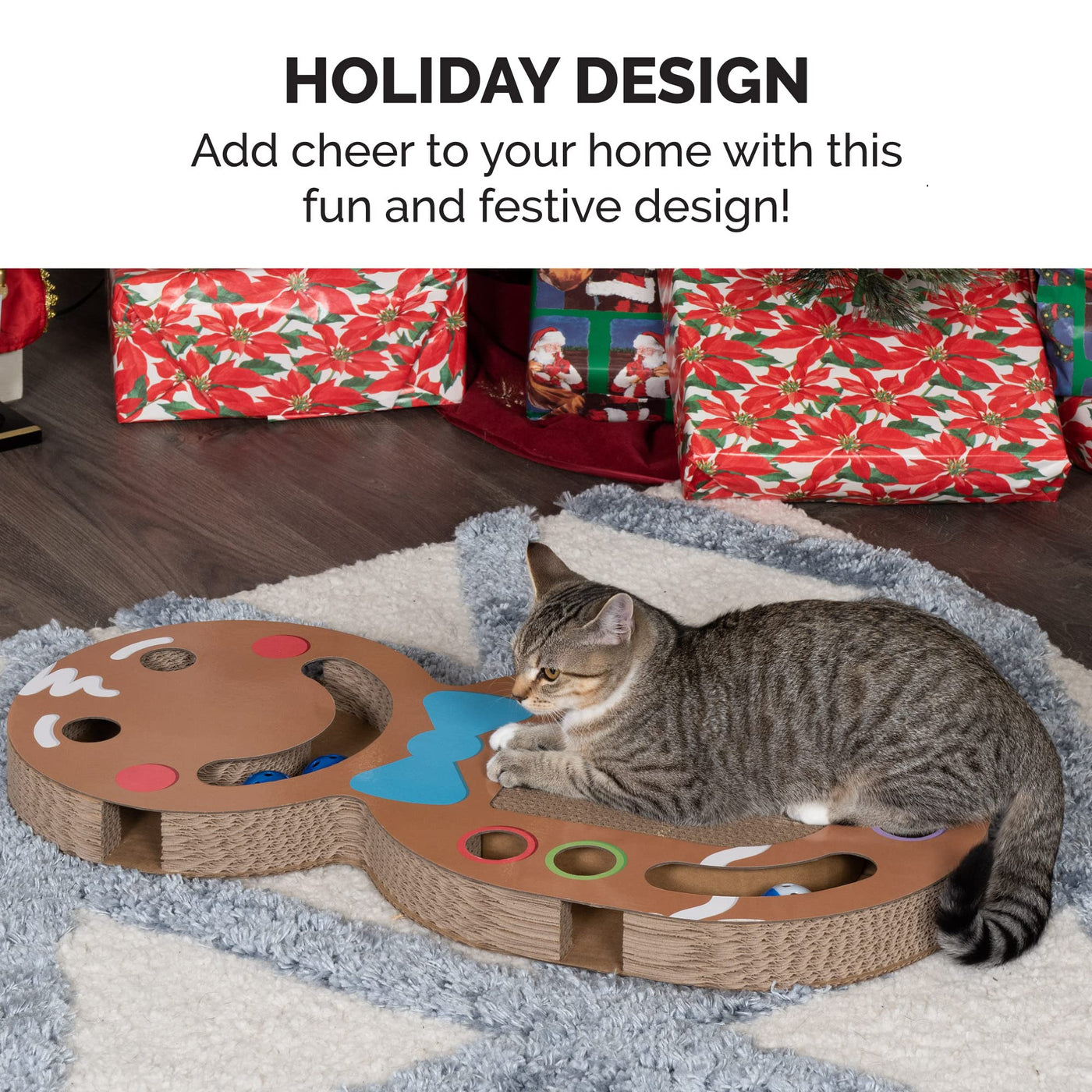 Furhaven Scratching Pad Ball Track Cat Toy W/ Catnip For Indoor Cats - Giant Gingerbread Man Holiday Corrugated Busy Box Scratcher - Brown, One Size