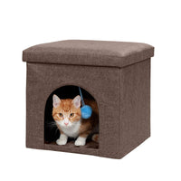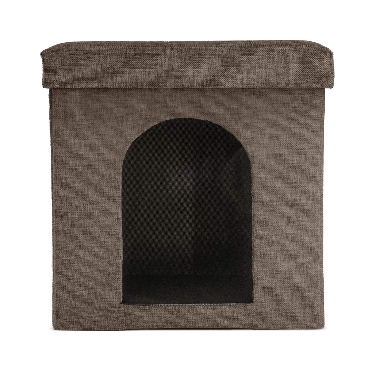 Furhaven Small Pet House Collapsible Ottoman-Footstool Condo Pet Bed - Coconut Brown, Small