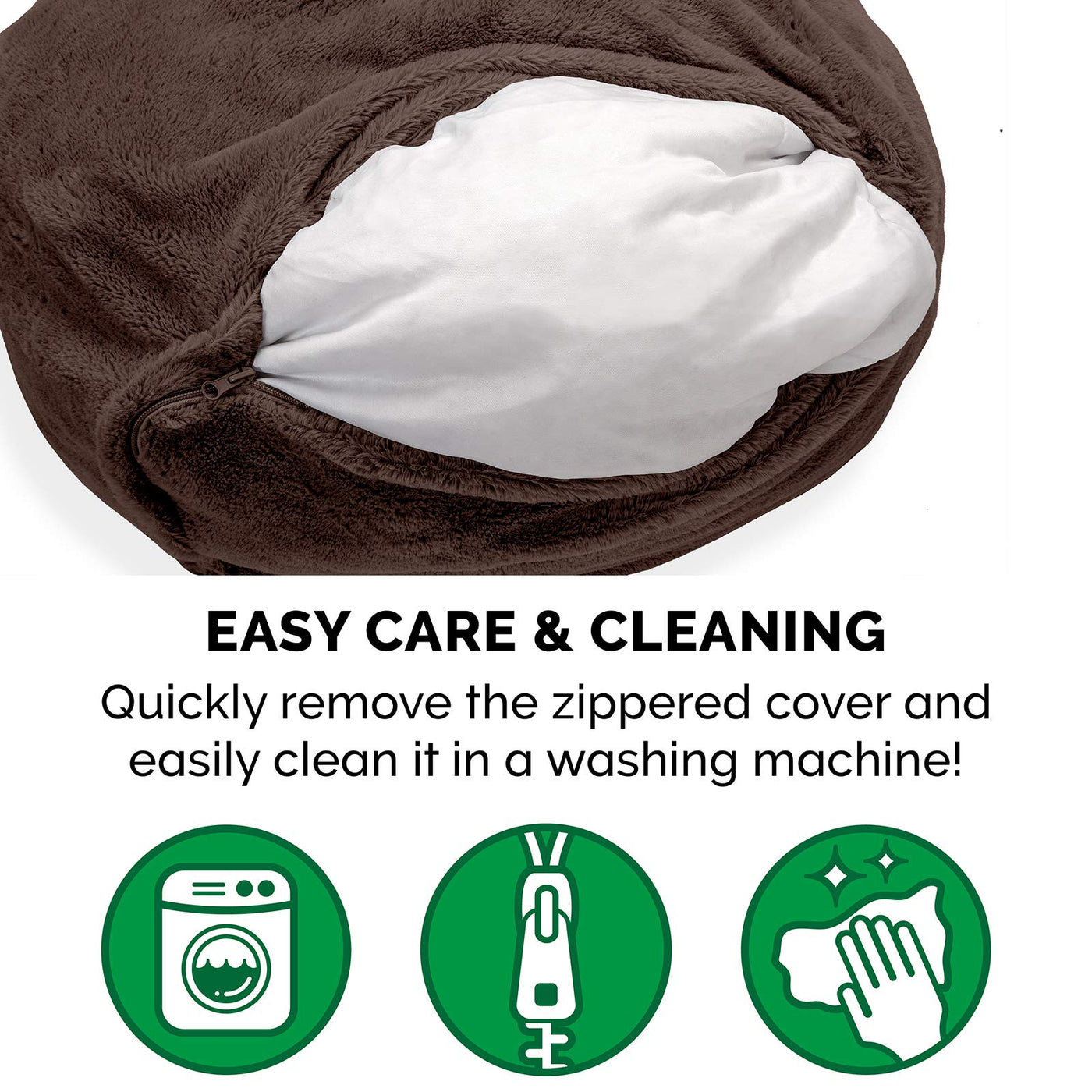 Furhaven Plush Faux Fur Beanbag-Style Ball Dog Beds feature a plush faux fur cover that is soft on paws and noses, and provides luxurious comfort for your dog or cat. Specially designed for 'nesters' - the stretchy interior liner allows your pet to shape the bed, providing maximum flexibility and comfort to meet their sleep needs! The nesting 'ball' is formed with six equal sided panels that is easily squished and formed to fit any area where extra comfort is needed. Each bed is generously stuffed with insulating, high-loft, recycled fluffy filling. Zippered design with machine washable fabrics ensures you can simply zip off the cover for quick clean-ups. Need a deeper clean? Our liner material is washable too! With a long-lasting design, the woven liner is zippered and also refillable! Add more stuffing as needed or switch to any filling that works for you - old clothes, shredded foam, beanbag beads, etc.