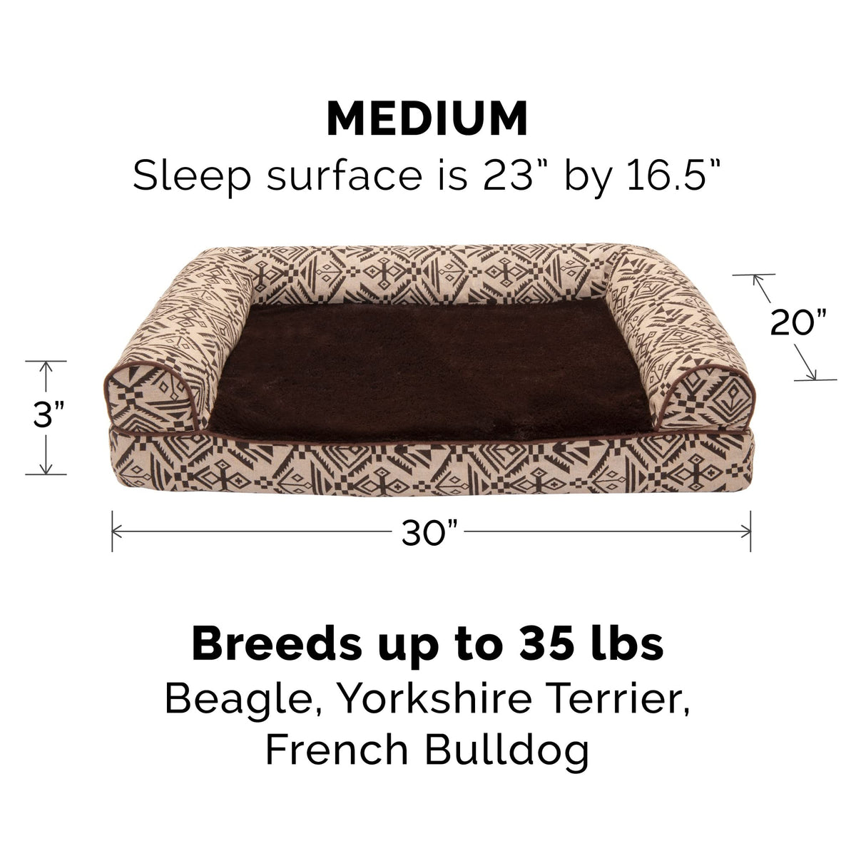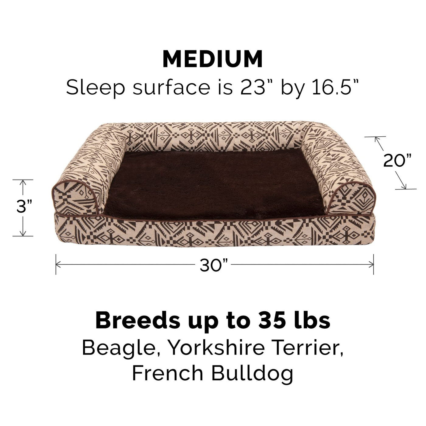 Finally, A Solution For Your Arthritic Pet'S Pain! This Furhaven Plush & Southwest Kilim Decor Sofa-Style Dog Bed Has A Soft Plush Faux Fur Sleep Surface Providing Your Pet Comfort While The Orthopedic (''Egg Crate'') Foam Base Supports Your Dog'S Joints And Pressure Points. The Jumbo Plus Option, For Larger Breeds, Features Solid Slab Orthopedic Foam For Greater Support And Comfort. The Sofa Bed Has Three Walls To Give Your Pup A Variety Of Positions To Lay In While Remaining Comfortable. Your Best Friend Deserves A Good Nights Rest And Now, Its Possible. With Their Very Own Orthopedic Pet Bed, Your Loved One Will Have Maximum Comfort For A Great Night'S Rest. Any Position Will Do On This Sofa Bed! The Squishy Bolsters On Three Sides Provide Comfort For Your Pet To Lay Down In A Variety Of Ways While Always Being Provided The Support They Need. For Example, Your Dog Can Lay On Their Tummy And Use One Of The Bolsters As A Pillow For A Cozy Night Of Sweet Dreams. Cats Love Our Sofa Beds Also! The Bolsters Provide Cozy Walls For Your Feline Friend To Snuggle Into For Their Cat Naps. This Luxurious Orthopedic Pet Couch Provides A Cozy Spot For Your Companion To Snuggle Up In, Leaving Your Favorite Spot On The Couch All For You! Easy To Clean. Cover Care: Remove From Core Before Washing (See Seam Label For Fabric Care Instructions). Foam Care: Spot Clean With Mild Soap; Rinse. Blot, Then Air Dry. Do Not Wring. Not For Unsupervised Use By Animals With Chewing Behaviors.